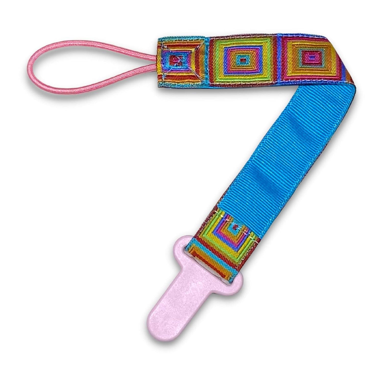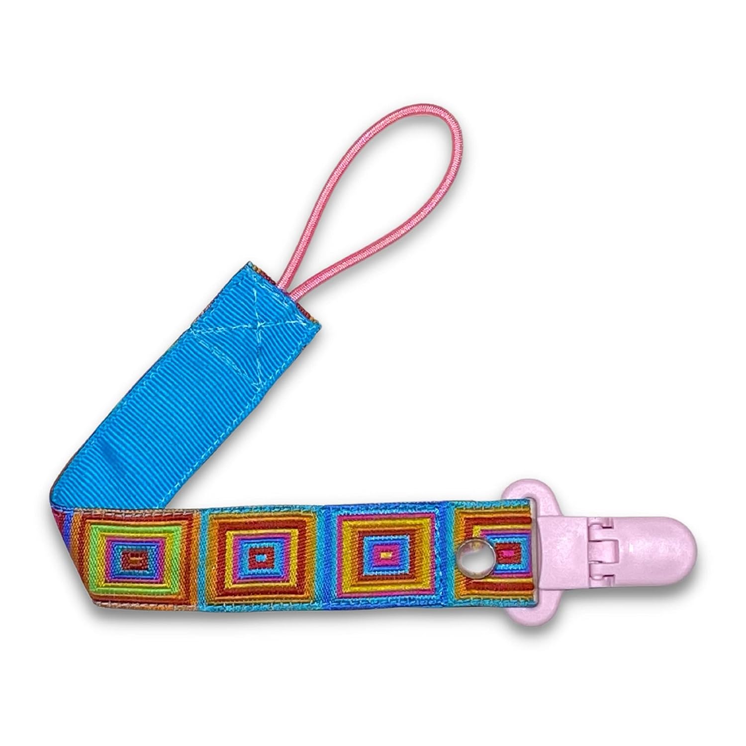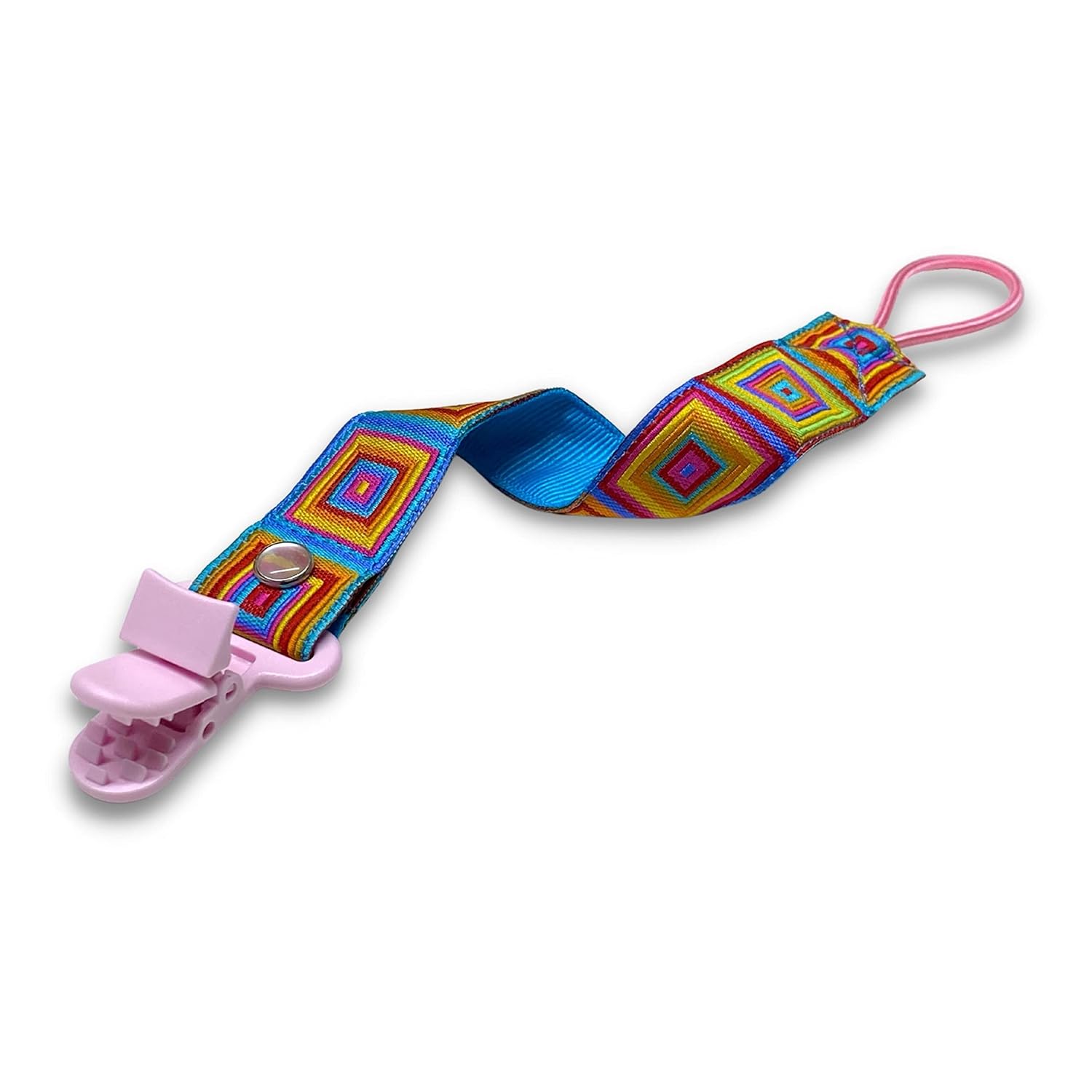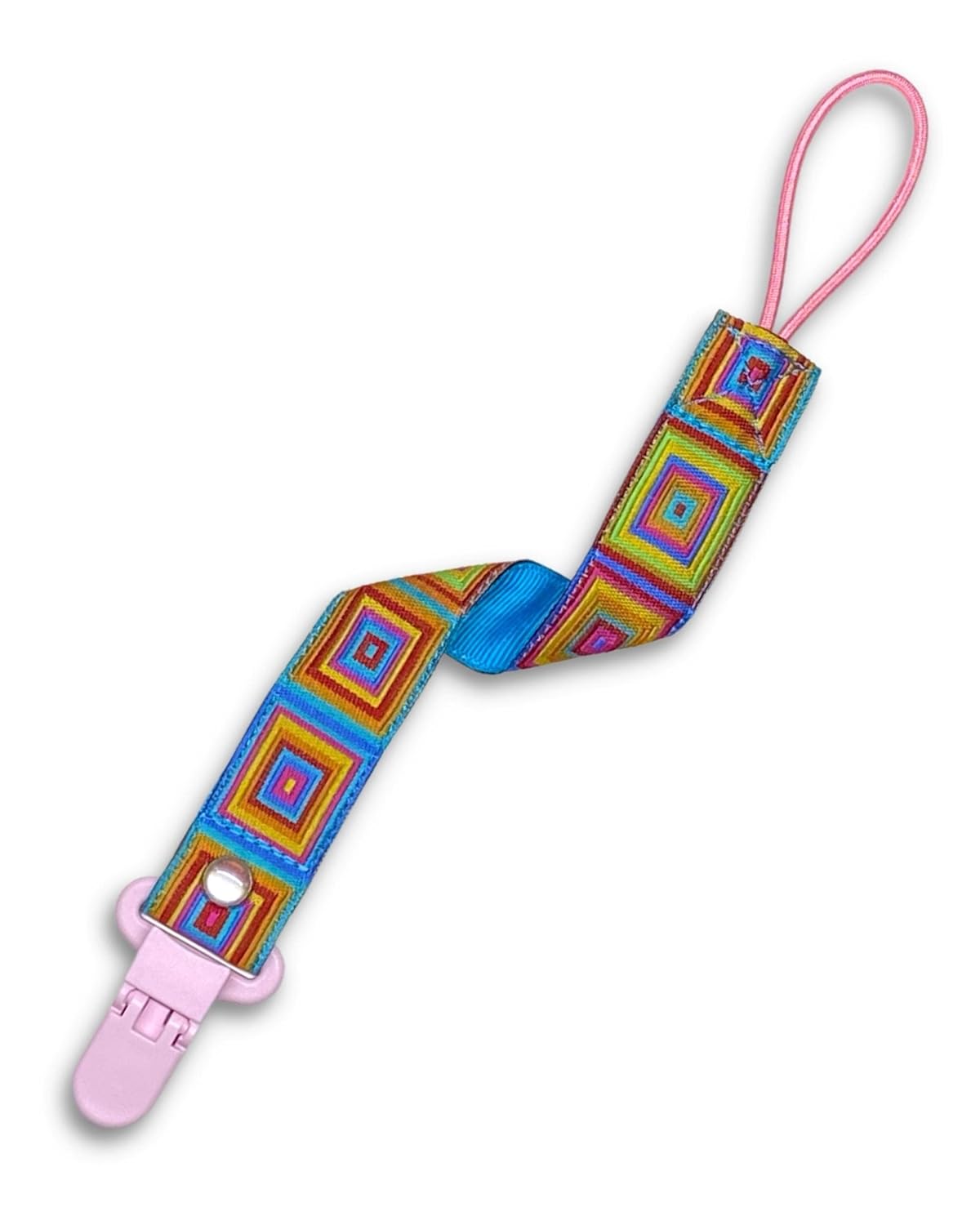 This pacifier holder strap features a unique square design in rose pink, adding a touch of charm and playfulness to your baby's essentials. Its flexible stitching ensures a snug fit and long-lasting use, while the pearlized embellishment enhances the overall aesthetic with a subtle gleam of luxury. Perfect for keeping your babyâs paci keepers, binky leashes, and teether accessories within easy reach.