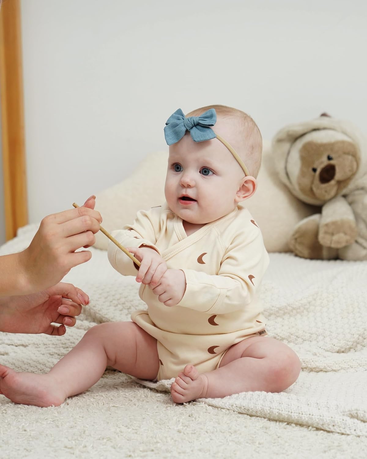 Carefully handmade with natural fabrics, these headbands prioritize safety and gentleness, ensuring they are suitable for newborns, infants, and toddlers. The adjustable design means they can grow with your baby, making them a long-lasting and practical choice for daily wear and special events alike.