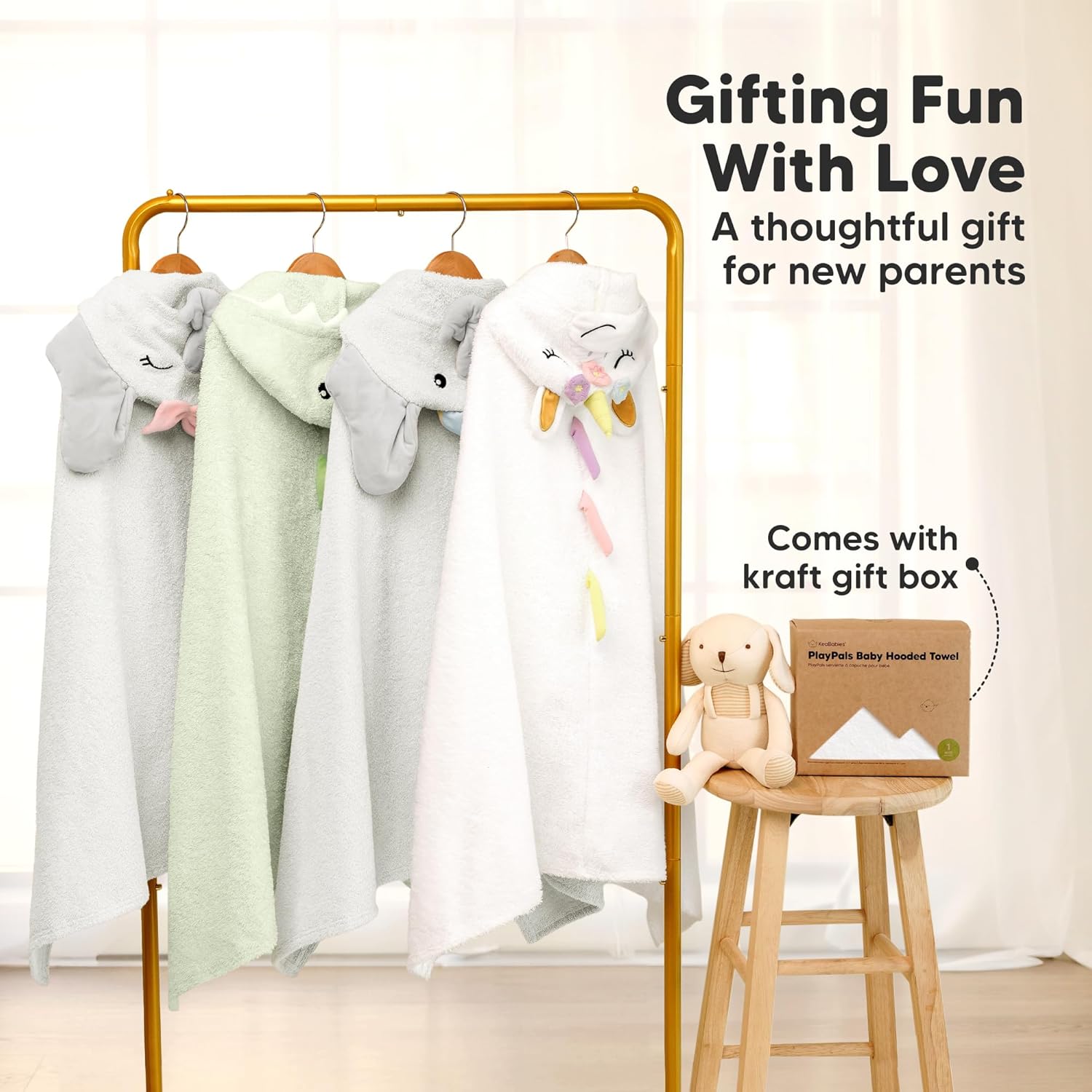 With its generous size of 43" x 40", it's perfect for wrapping your baby after bath time, changing clothes, or even as a play mat. The convenient drying loop makes storage and hanging effortless, adding to its practicality. As a thoughtful gift, it comes in an eco-friendly kraft box, making it a sustainable and stylish choice for new parents looking to cherish every detail.