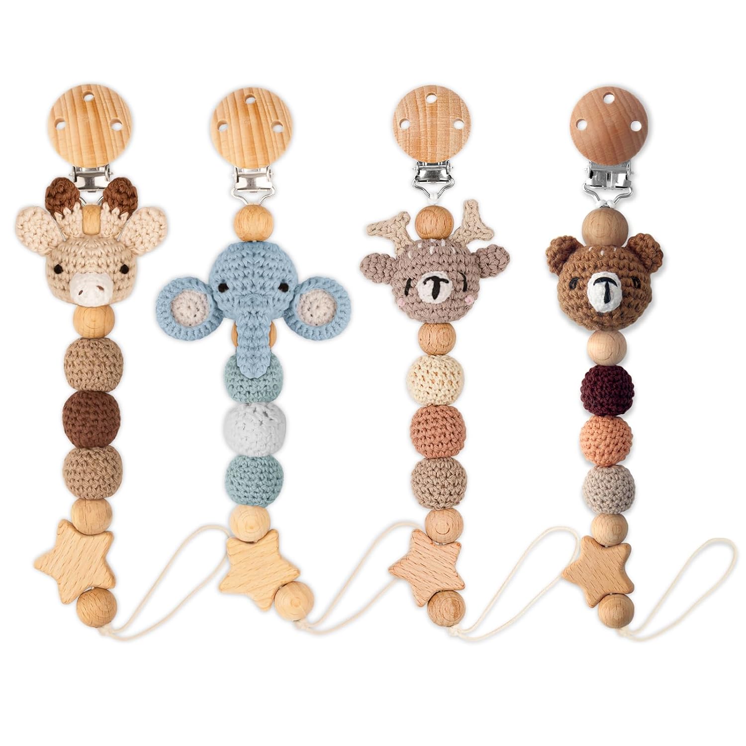 This LSTRAGY handmade pacifier clip holder is a delightful addition to your baby care routine. Made with care using natural soft cotton yarn, it's not only beautiful but also built to last. The cute stï¿ animal design captures your babyâs imagination and adds a sense of comfort and security during feeding or soothing times.