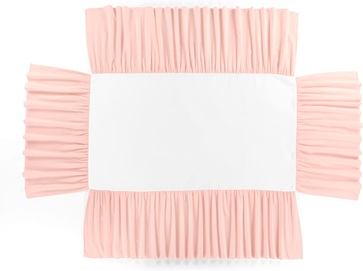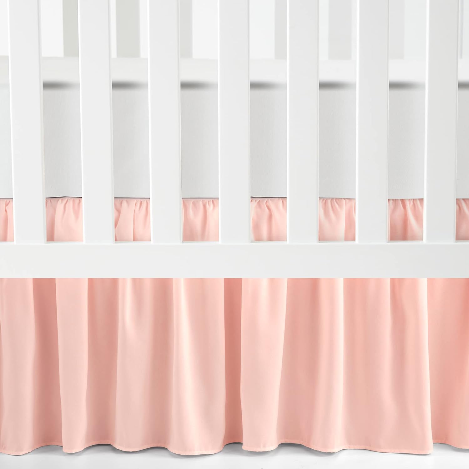 This crib skirt features a minimalist yet charming aesthetic that blends seamlessly with modern, farmhouse, or cozy nursery themes. The pink hue enhances the overall ambiance, offering warmth and a cheerful, subtle pop of color.