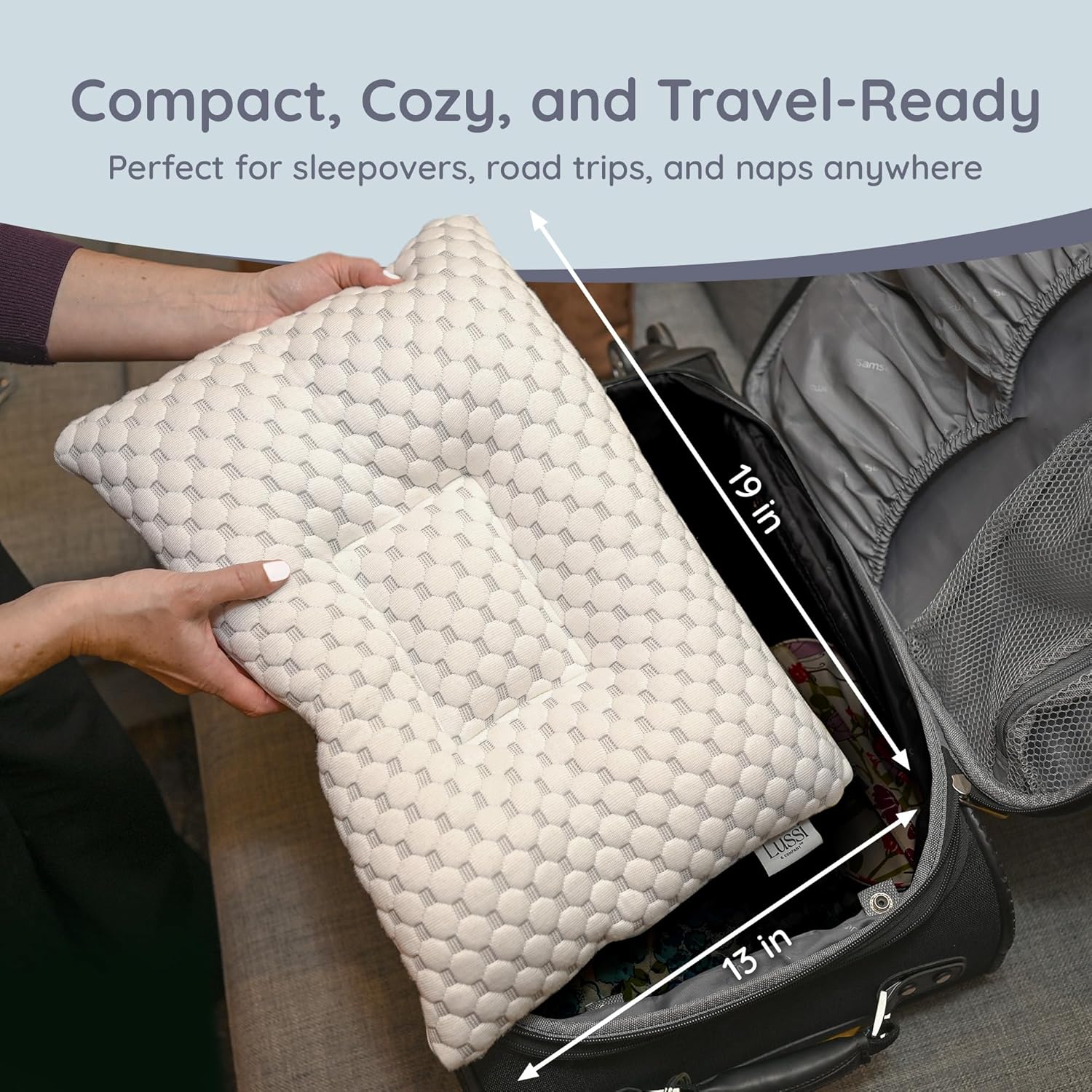 Lussi & Company Toddler Pillow is designed for optimal spinal support and comfort as your child grows. It features a dual-sided design, adjustable fit, and durable washable protector. Perfect for home, travel, and overnight use.