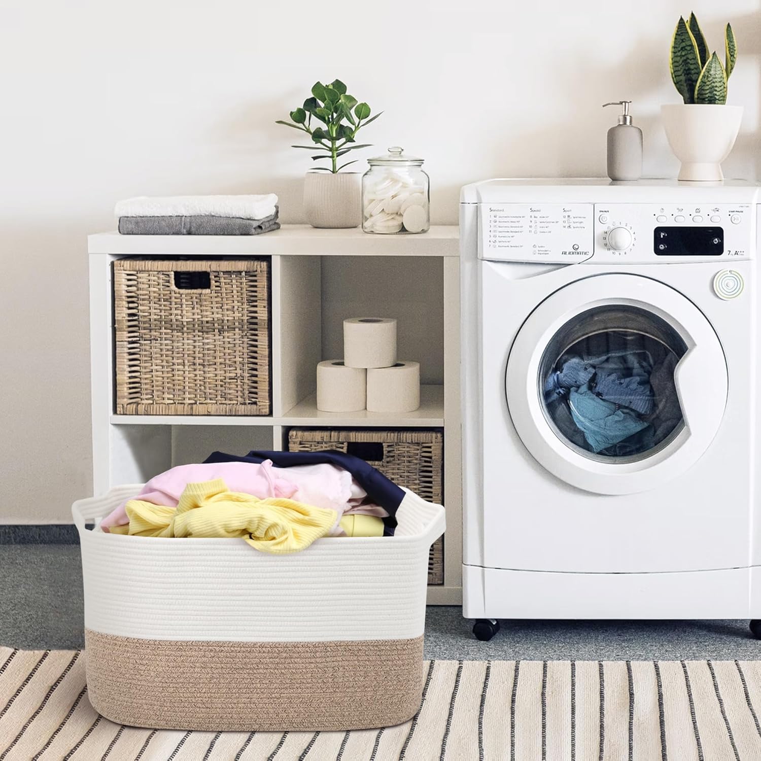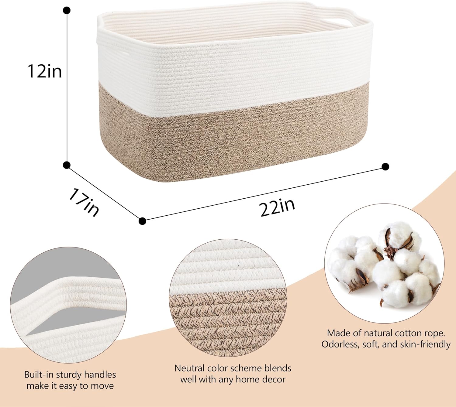 MEGASKETâs woven cotton rope storage baskets combine functionality with modern design, making them a perfect choice for organizing your home. Crafted from high-quality, natural materials, these baskets offer a safe and eco-friendly storage solution ideal for households with children, babies, or pets.