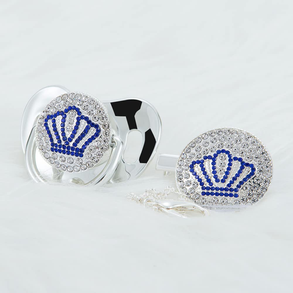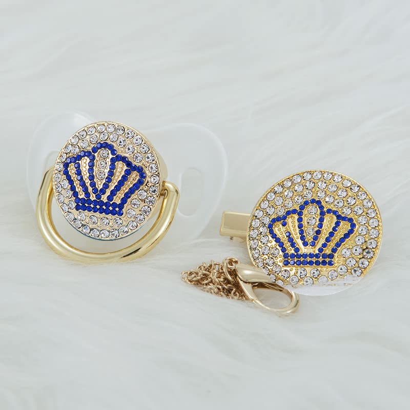 This beautiful blend of a pacifier and clip brings both comfort and charm into your baby's daily life. The pacifier is adorned with sparkling crystal rhinestones, making it not only secure but also an eye-catching accessory. The clip is designed to fit most standard pacifiers, ensuring easy and convenient access when you're out and about. Crafted from non-toxic and rust-free materials, this set is built to keep your baby safe while adding a touch of elegance to their routine. It's simple to clean with a damp clothâno boiling or dishwashing required to preserve its delicate finish.