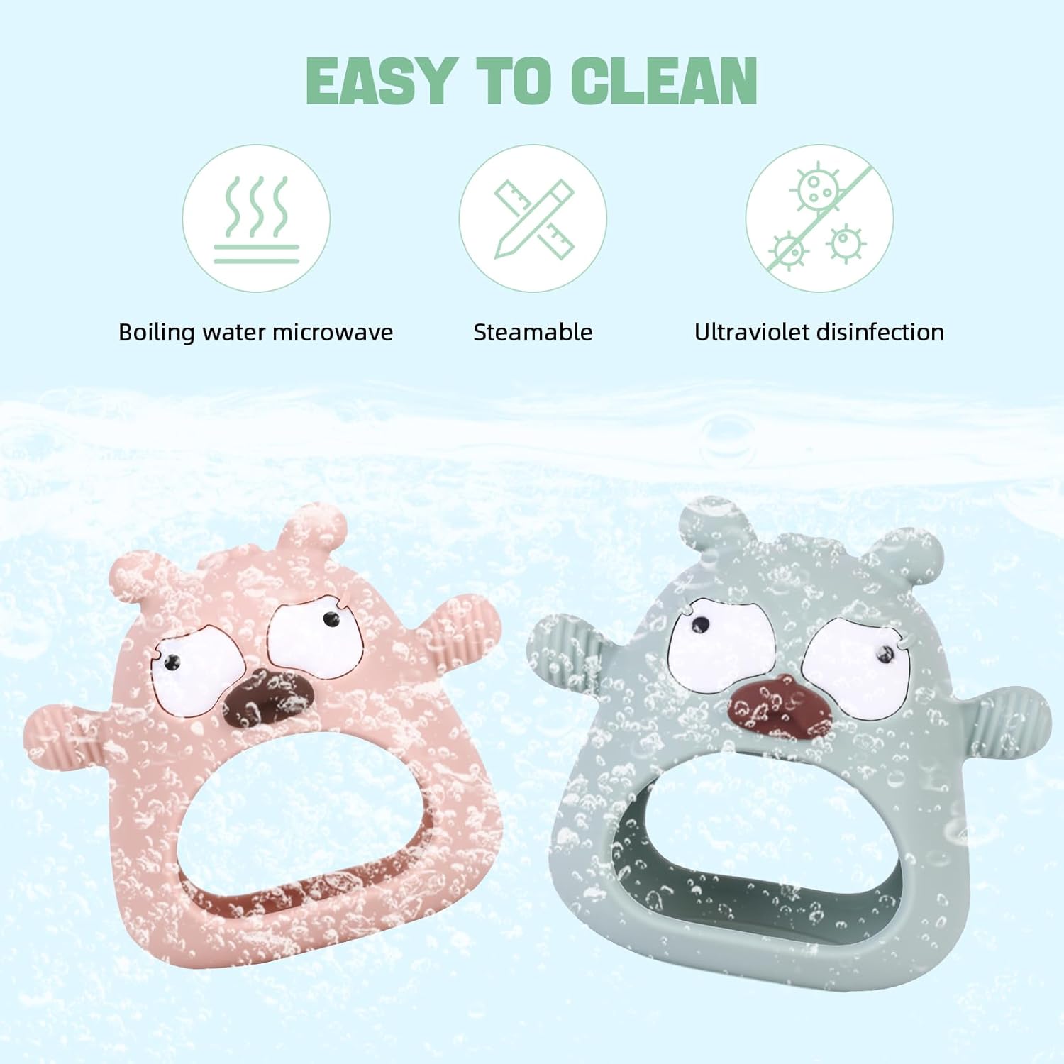 MOLkoi Baby Teething Toy is crafted for babies aged 0-12 months, offering a safe and effective way to soothe teething discomfort. Made from ultra-soft, food-grade silicone, it's free from harmful BPA and non-toxic, ensuring a gentle chew experience for your little one's sensitive gums. The unique dog shape adds a playful element, helping to stimulate sensory development while encouraging hand and mouth coordination.