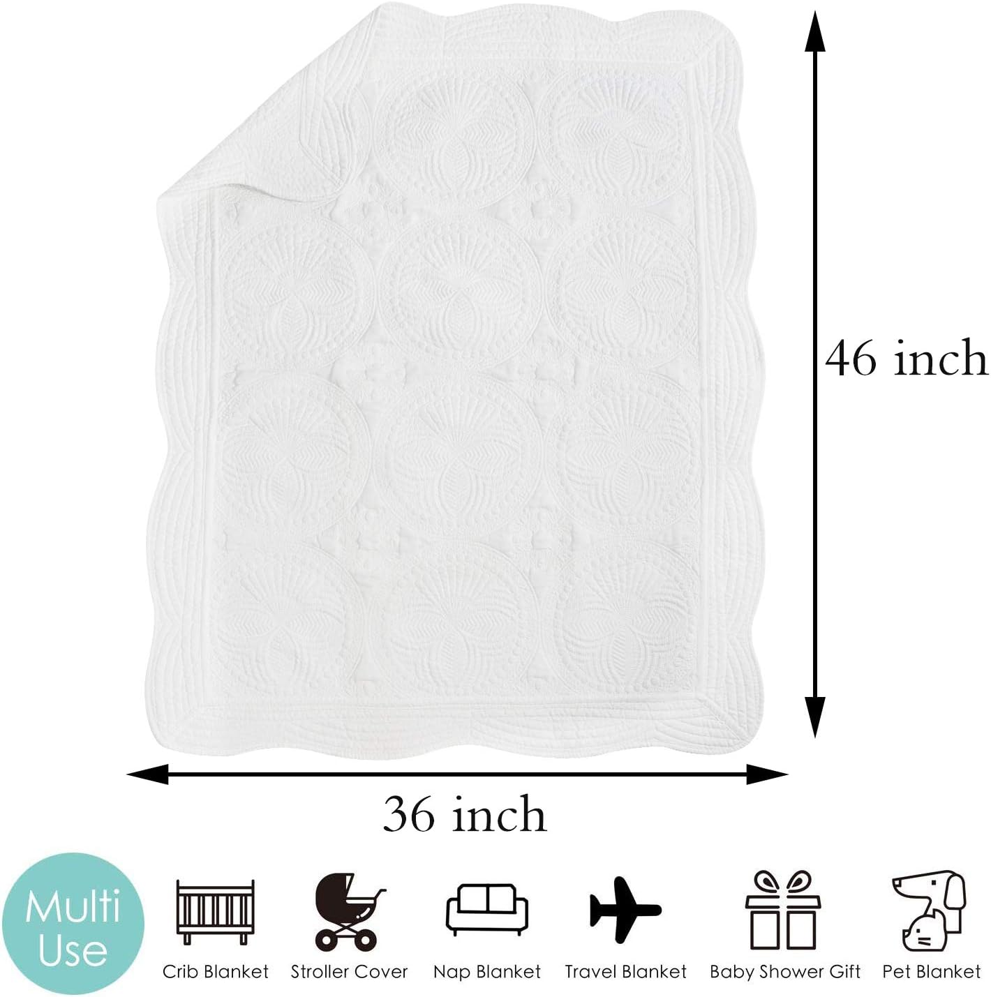 This baby quilt is crafted with a refined design that brings a touch of elegance to any nursery. Its scalloped trim edges add a graceful detail, while the embossed stitching highlights the quality and care that goes into every stitch. Made from a soft blend of 60% cotton and 40% polyester, it is breathable, comfortable, and safe for your baby's delicate skin.