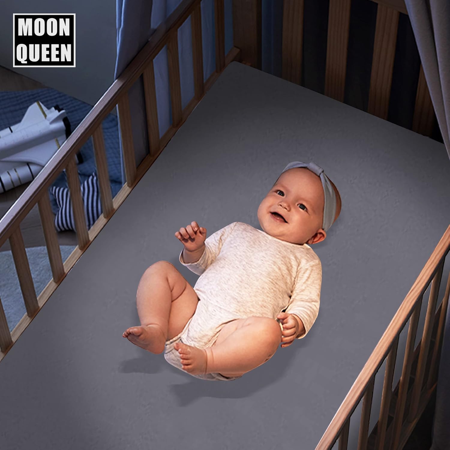 MOONQUEEN provides a 2-pack of ultra-soft microfiber crib sheets that offer gentle support for your babyâs mattress. These fitted crib sheets are designed to fit standard mattress sizes, including those up to 8 inches thick, and are perfect for creating a clean, cozy sleep environment for your little one.