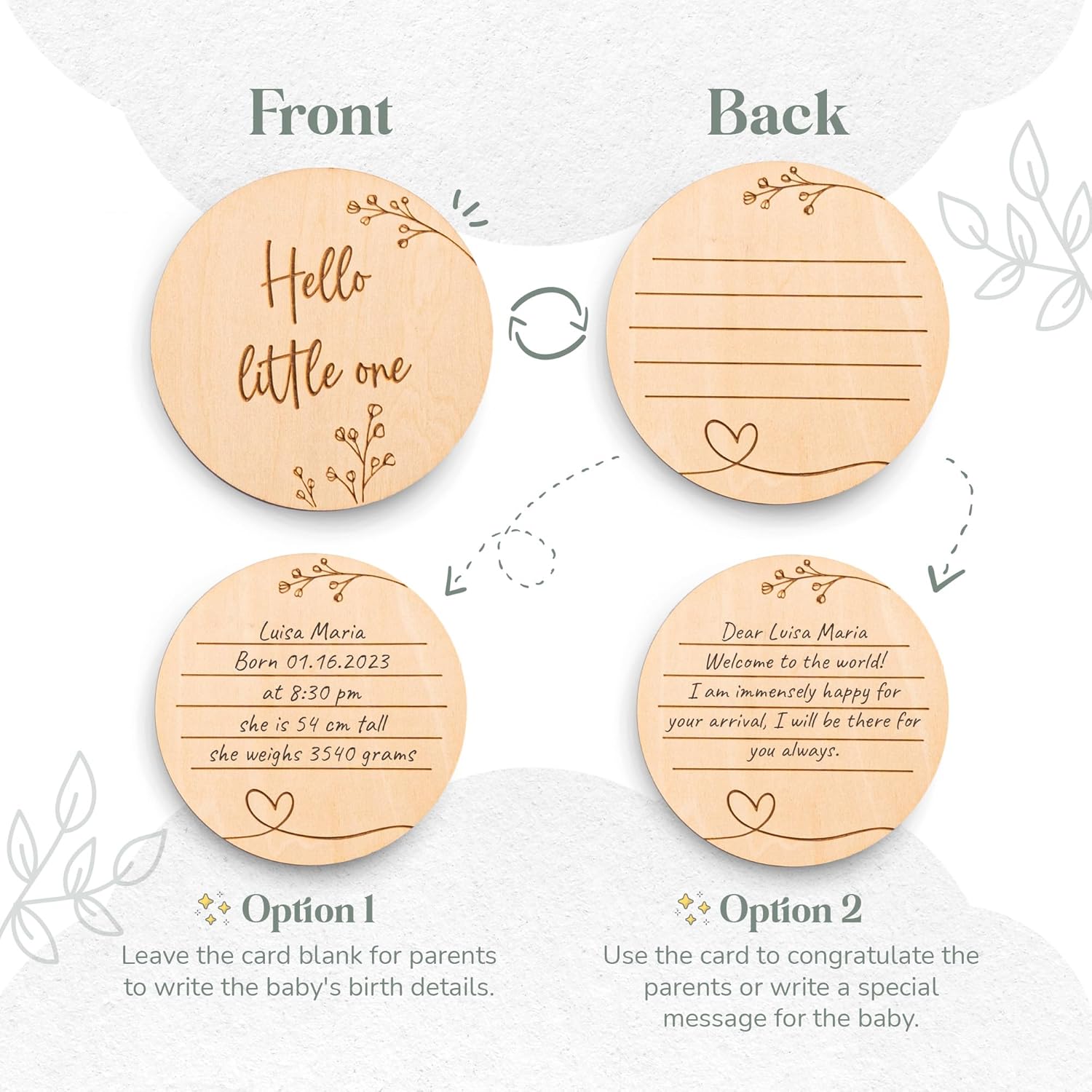 The adjustable bib is perfect for dual use and cleans easily with a wipe. It's a practical choice for feeding and breastfeeding. The birth announcement sign is a beautiful way to mark the occasion with a personal, heartfelt touch.
