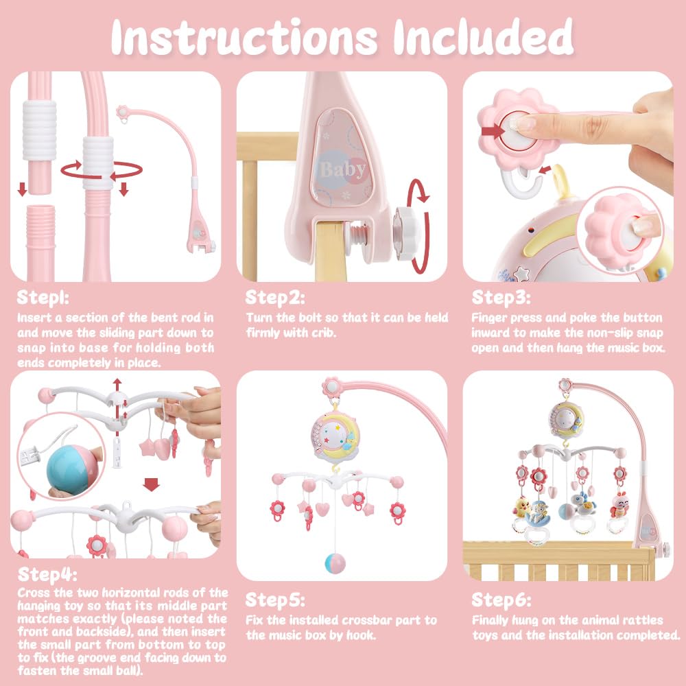 The Baby Musical Crib Mobile is designed to bring peace and comfort to your little oneâs sleep time. Combining style and function, it features a soft, whimsical design that adds a touch of magic to any nursery. Integrated star lights and image projections create a dreamy environment, helping your baby relax and drift off to sleep more easily.