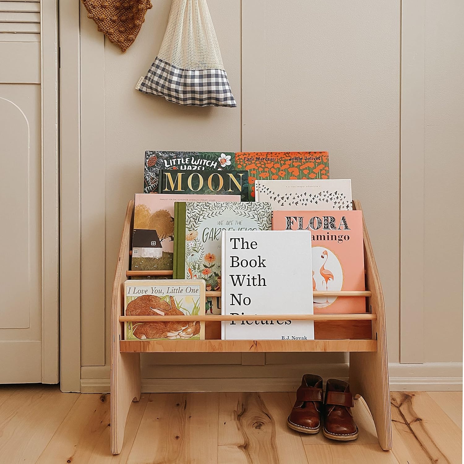 This natural wooden nursery shelf is designed with your childâs growth and development in mind. Perfect for promoting independence, itâs crafted from safe, high-quality birch plywood and finished with non-toxic paints to ensure a healthy play environment.