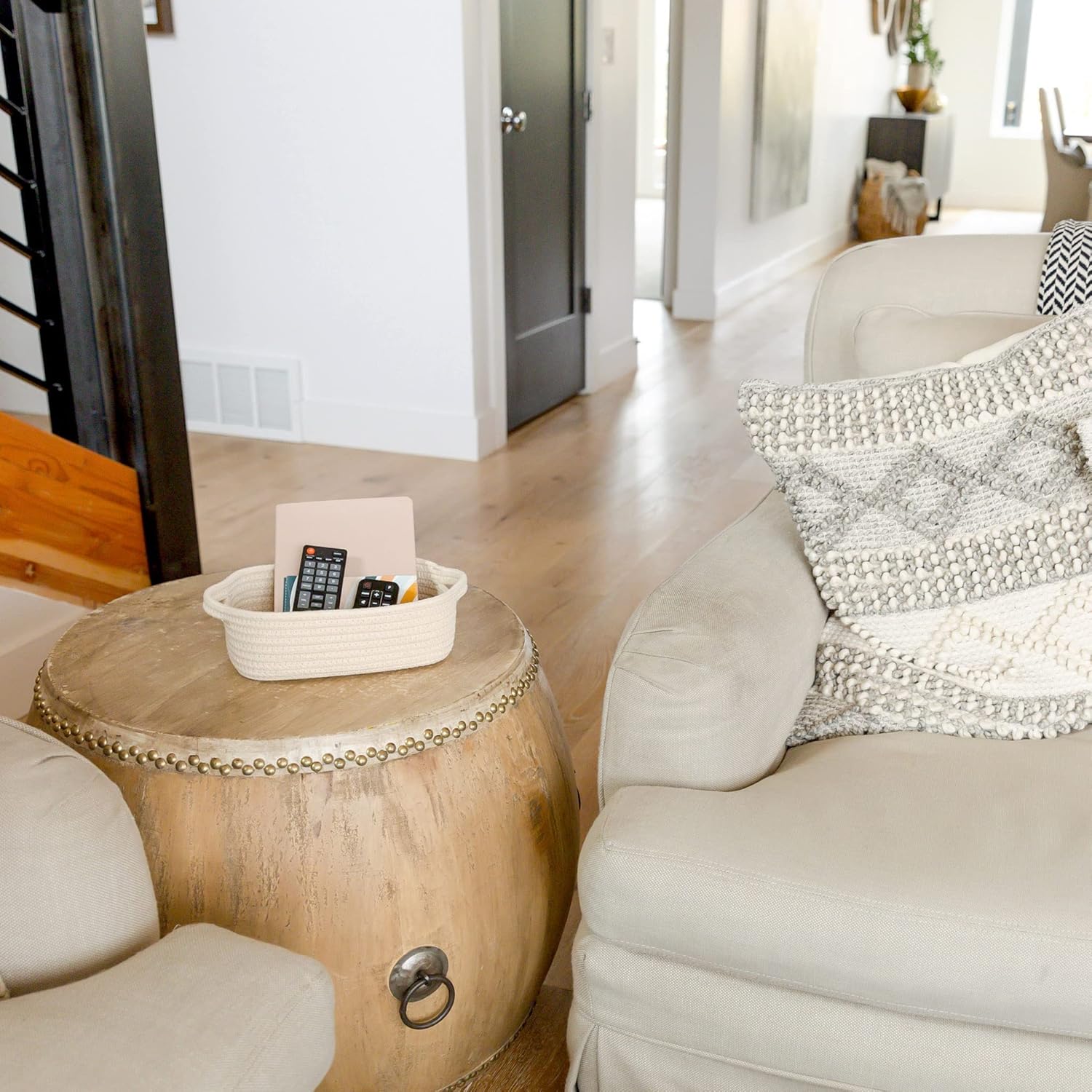 Say goodbye to messy storage and hello to elegant organization. These 5-piece storage baskets are crafted from natural cotton rope, making them soft, safe, and perfect for use in baby nurseries or kidsâ rooms. Their reinforced stitching ensures durability, so you can rely on them for everyday use without worrying about wear and tear. Whether you're tidying up toys, keeping bathroom essentials in check, or storing blankets and linens, these versatile baskets deliver both function and style. Plus, the stackable design keeps them secure during shipping and protects them when stored, so they always arrive in perfect condition. With their timeless neutral tones, they blend effortlessly with any home décor, adding a touch of charm to your living space.