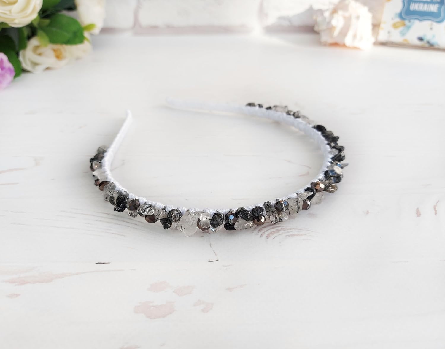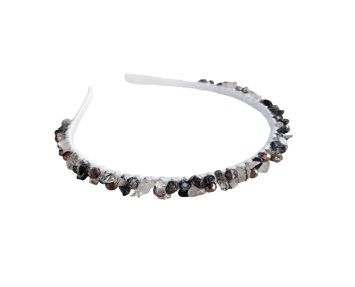 Elevate your style with this elegant and refined hairband. Featuring delicate quartz beads in a striking navy hue, it adds an exquisite touch of sparkle to your ensemble. The minimalist design effortlessly complements any hairstyleâwhether you're dressing up for a formal event or keeping it simple for daily wear.