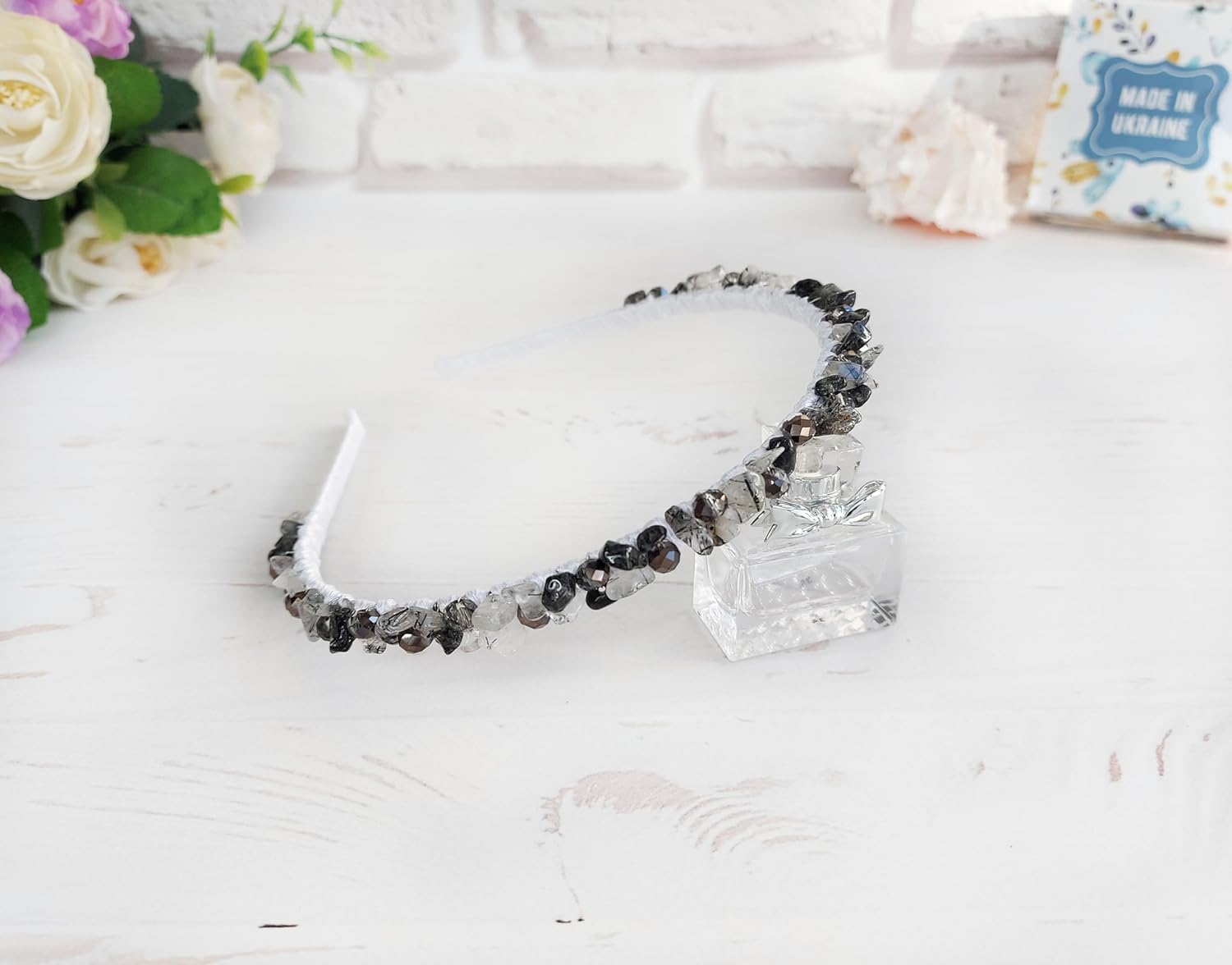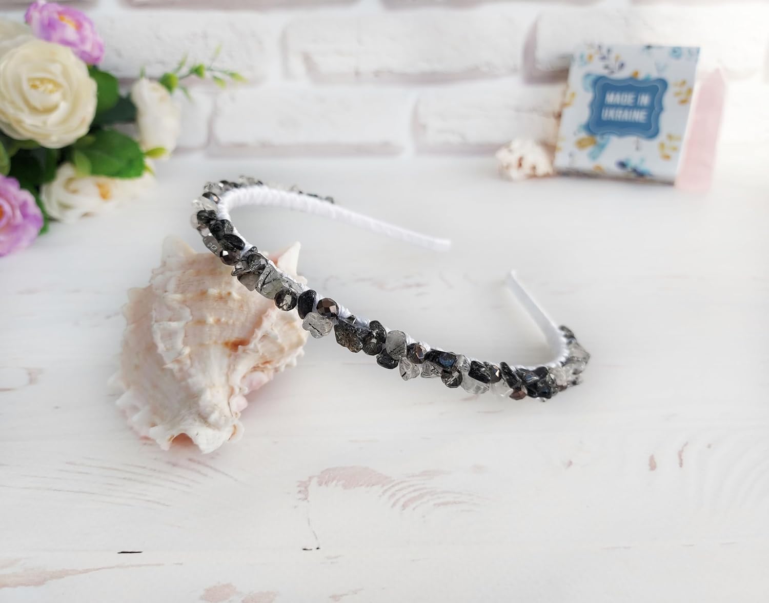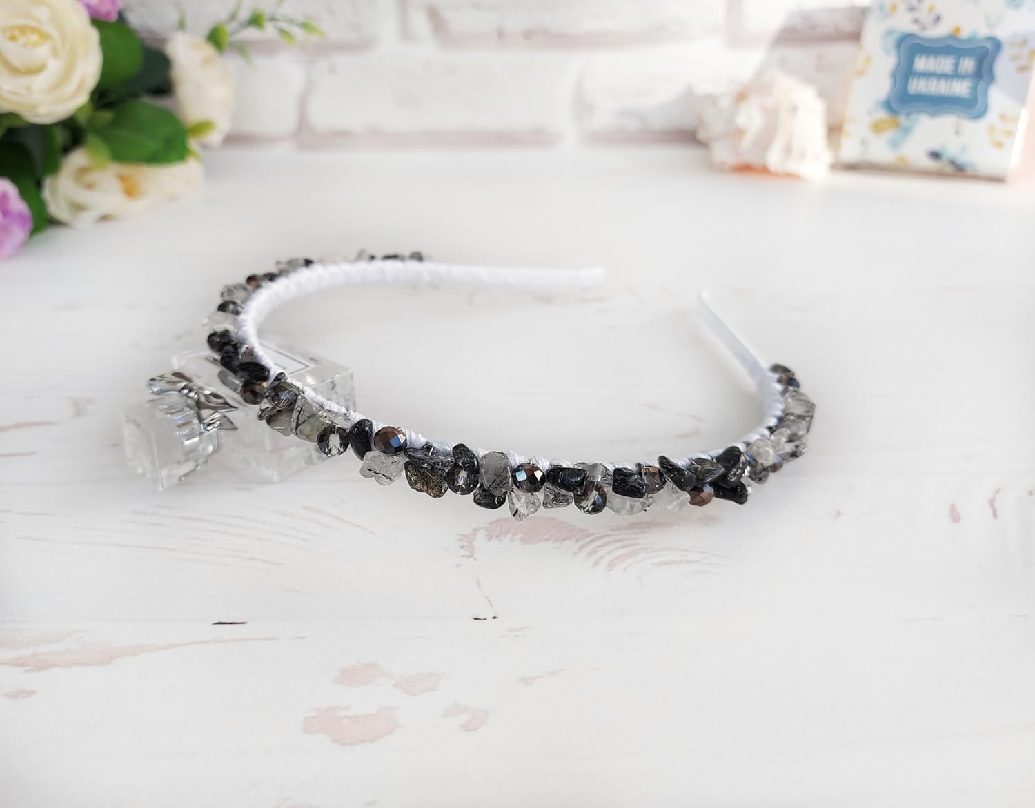 Every hairband is meticulously crafted by hand, ensuring a unique and personal finish that sets it apart from factory-made alternatives. The use of genuine quartz and navy blue beads enhances its timeless allure, making it a treasured accessory.
