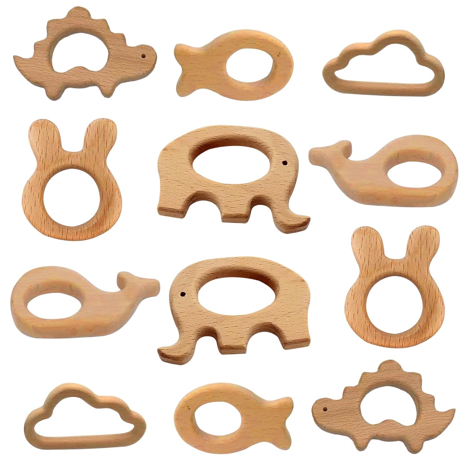 Easing teething discomfort has never been more fun or functional with this 12-piece teether set from OSTTRPO. Made from premium, naturally sourced wood, each piece offers a gentle and satisfying chew for your baby's emerging teeth. Featuring playful animal designs like elephants, rabbits, and whales, this set is both an engaging toy and a tool for early development.