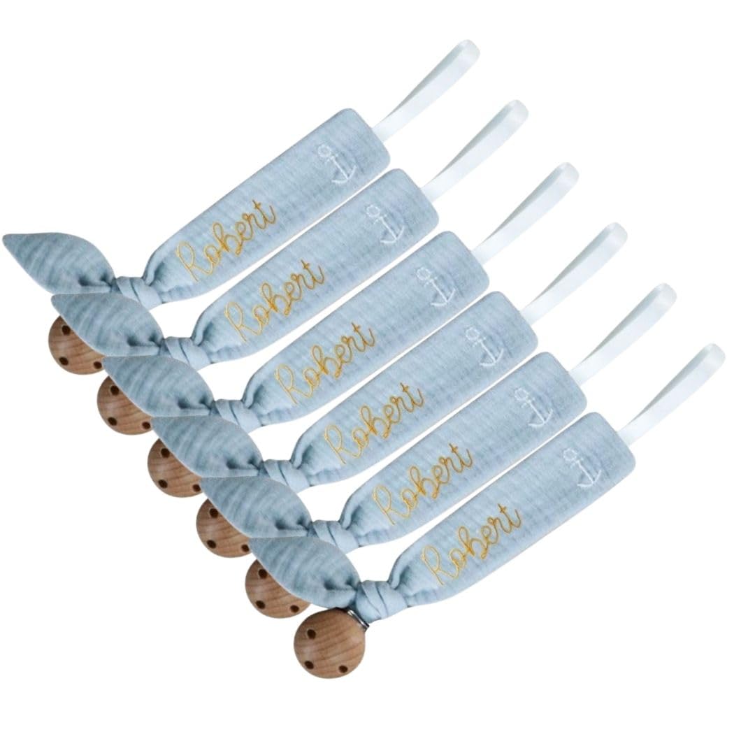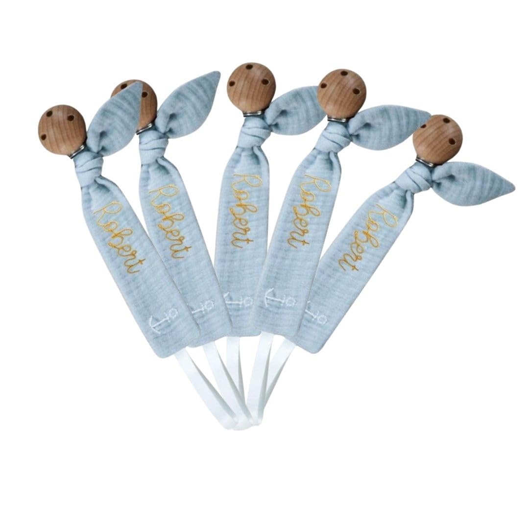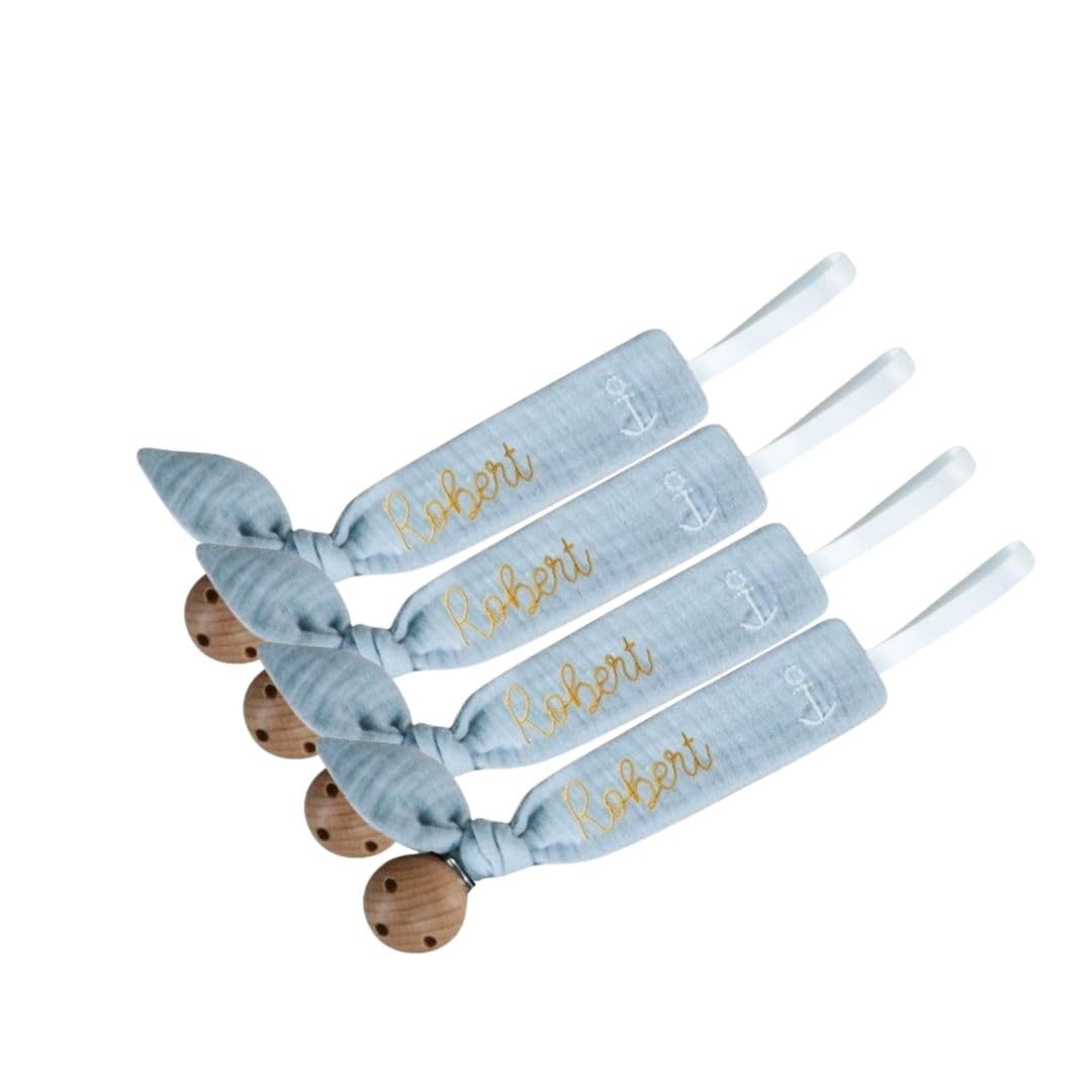 Introducing a chic and functional pacifier clip that's as unique as your baby. Featuring custom embroidery, it adds a personal touch to any outfit while keeping your little one calm and comforted. The elegant grey finish blends effortlessly with a wide range of styles, making it a subtle but stylish addition to your baby's gear. Built with a strong, durable metal clasp, it securely attaches to clothing without causing damage or wear. Whether you're on the go or staying at home, this clip ensures your baby stays happy and the pacifier stays clean and within reach.