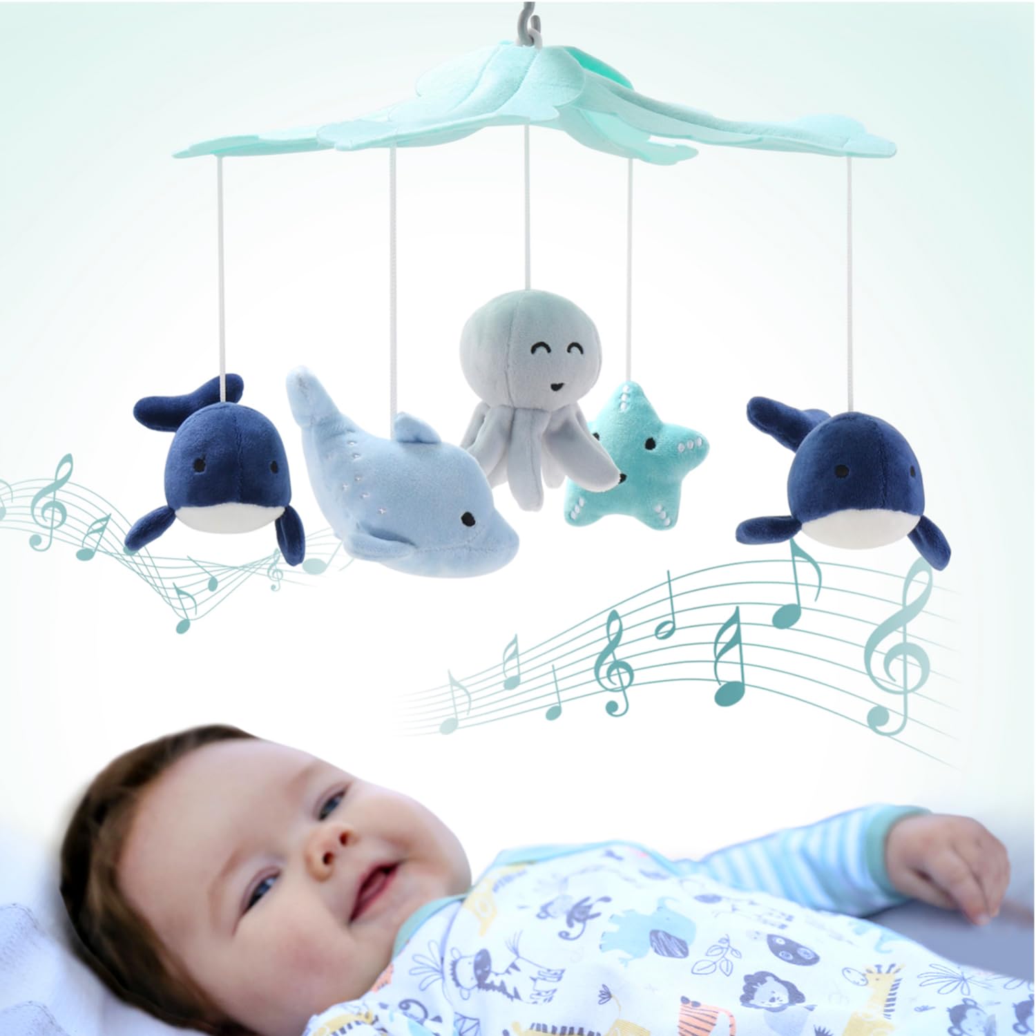 This charming crib mobile brings a sense of calm and wonder to your baby's room. With a nautical theme that features a delightful collection of ocean animals, including a whale, dolphin, octopus, and starfish, itâs not just a decoration but a meaningful addition to your baby's nursery. The mobile is designed with care, allowing it to rotate gently and create a soothing motion that can help your little one drift off to sleep.