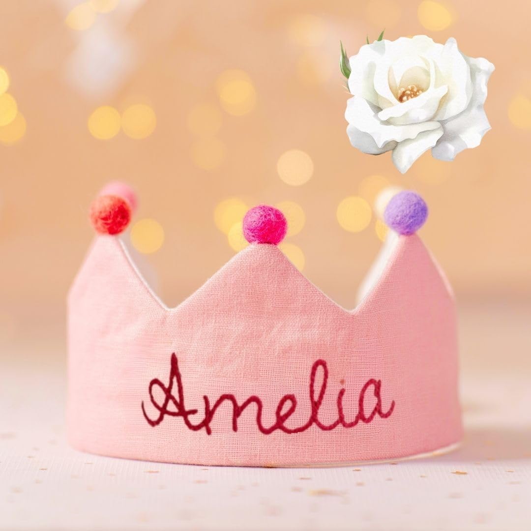 Detailed with hand-embroidered elements using 100% DMC thread, this crown is not only a timeless keepsake but also a personalized gift. You can customize it with your baby's name to make it truly special and unforgettable.