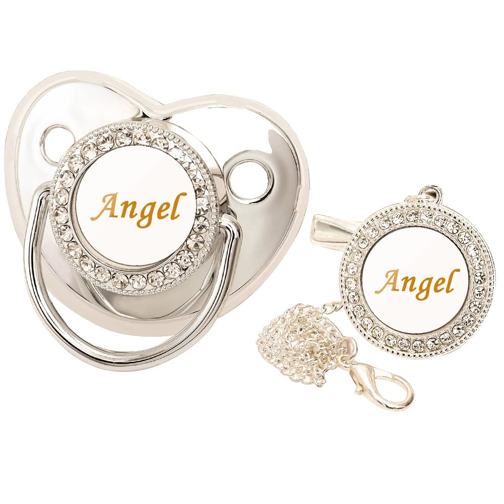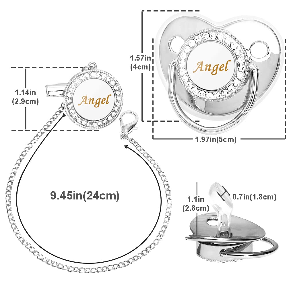 Add a touch of magic to your baby's daily essentials with this adorable personalized pacifier and clip set. Featuring an elegant glitter crystal design, it brings a sparkling shine to both special occasions and everyday moments. The set is perfect for baby showers, newborn celebrations, or as a memorable gift for any little one.