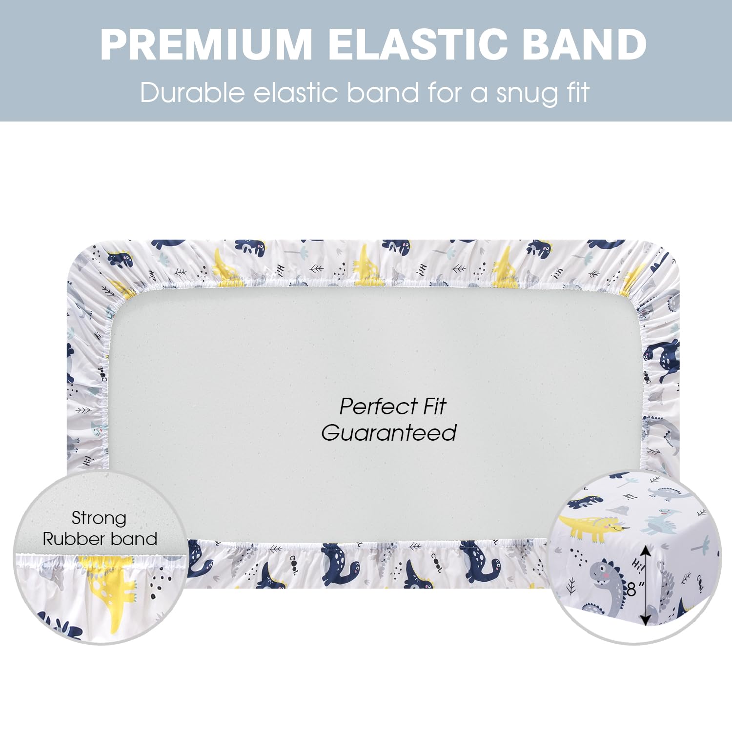 Available in charming dinosaur, elephant, stars, and navy blue patterns, these crib sheets are perfect for baby boys. They add a touch of fun to the nursery while keeping the room stylish and inviting.