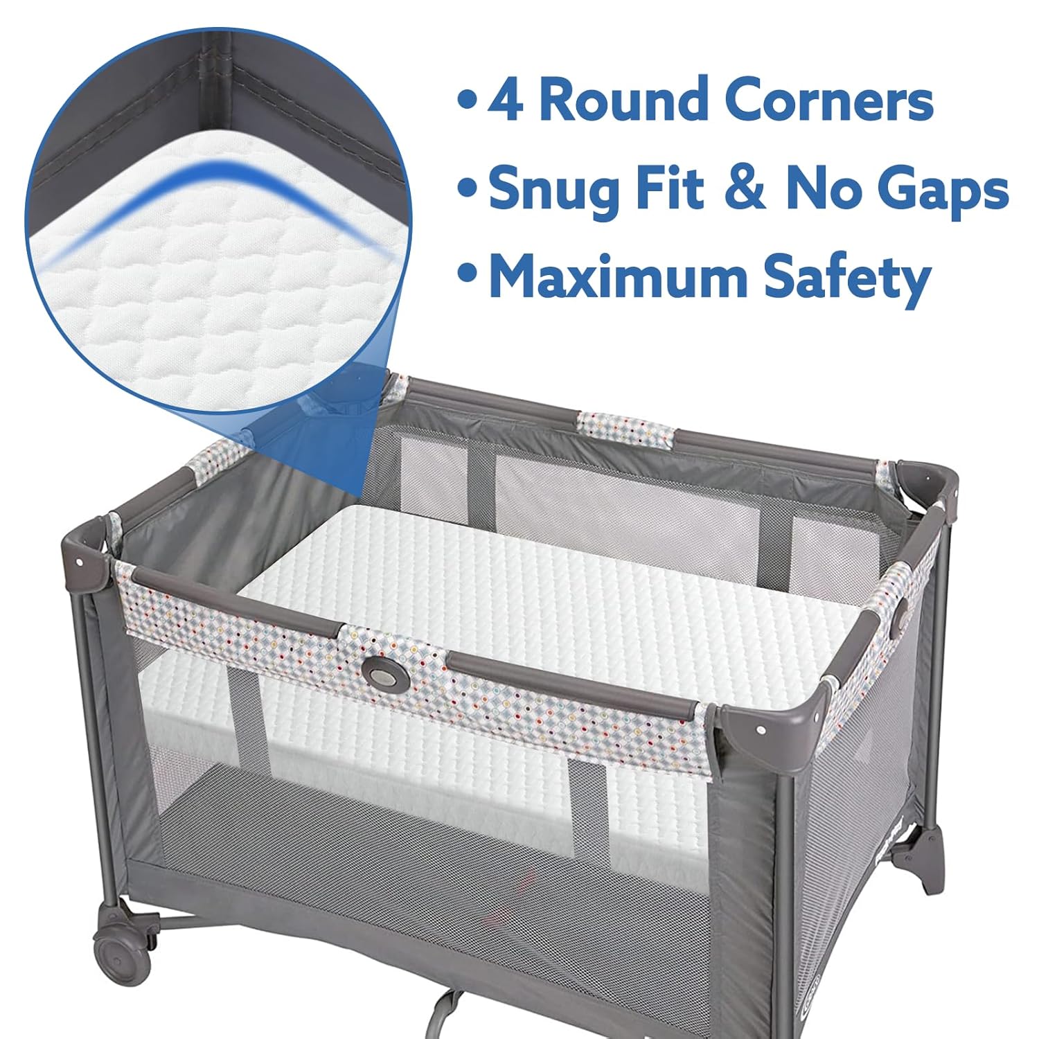 With a rounded corner design that fits tightly against the playard edges, this mattress ensures no gaps for added safety. The waterproof cover is not only a defense against spills and accidents but also makes cleaning simple and effortless. It's gentle on sensitive skin and perfect for young babies and toddlers, offering both comfort and hygiene.