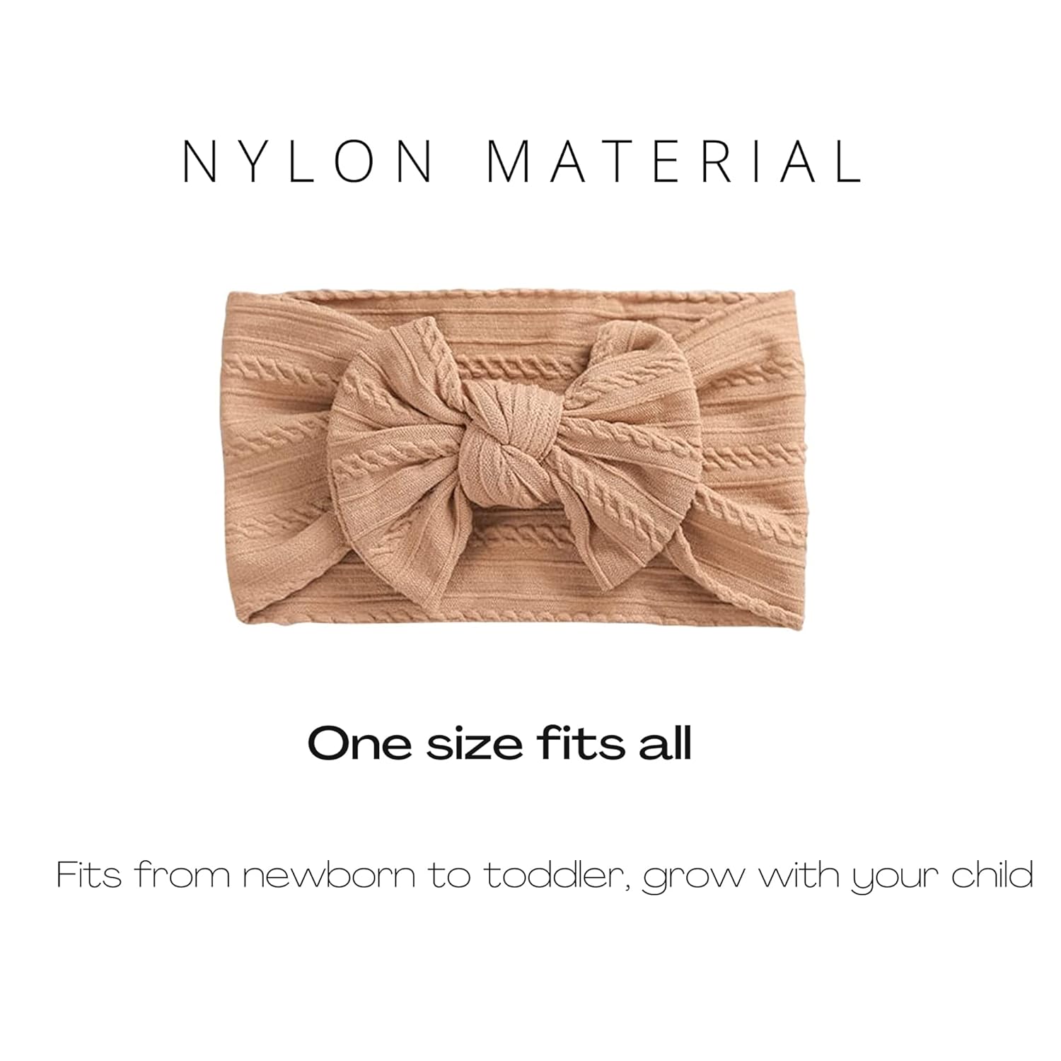 These baby headbands are crafted from ultra-soft, stretchy nylon that adapts to your babyâs head shape for a customizable fit. The fabric is gentle on sensitive skin, making it safe for prolonged use, especially for newborns and infants.