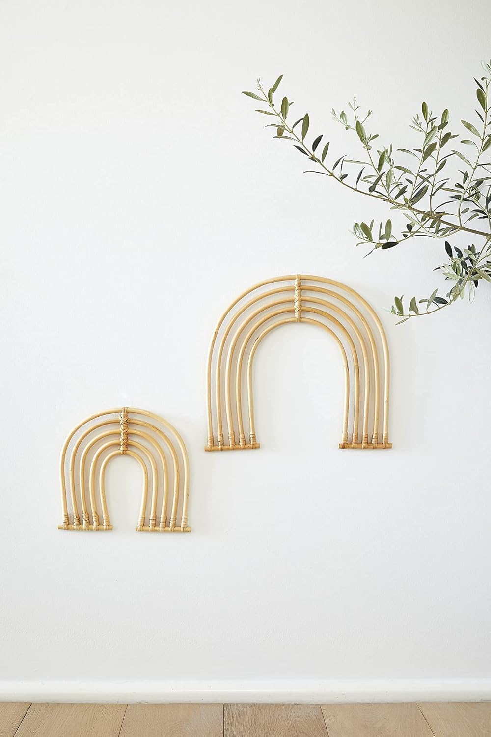 These Handmade Rattan Rainbow Wall Decor pieces are more than just eye-catching decorâthey bring warmth, personality, and a touch of bohemian charm to any room. Featuring vibrant rainbow colors and natural rattan craftsmanship, they are designed to complement both modern and traditional interiors. Whether you're looking to style your baby's nursery or create a whimsical environment for your little ones, these pieces are sure to make a statement with their artistic and elegant appeal. Thoughtfully made with sustainable materials, they are an eco-friendly choice that aligns with your values as a parent. Not only are they durable, but their timeless design ensures they'll remain a cherished part of your home for years to come. The versatility of these wall decor items allows for easy installationâhanging or leaningâmaking them perfect for any wall arrangement. Ideal as a meaningful gift, each piece carries a sense of hope and positivity, filling your child's space with a warm and uplifting atmosphere. Looking for a stylish and eco-friendly way to decorate your child's room? Our Handmade Rattan Rainbow Wall Decor offers a perfect blend of artistry and functionality. The use of natural rattan not only adds a unique texture but also ensures durability and a timeless aesthetic. With their playful rainbow design, these pieces add a touch of color and cheer, creating a welcoming environment for your little one. Whether you're a parent searching for sustainable baby room decor or a gift giver aiming for something meaningful, this set delivers both. The easy-to-install design makes it simple to style your space, while the gift-ready packaging adds an extra layer of thoughtfulness. These wall decor items are designed to bring joy, inspire creativity, and enhance the overall ambiance of any room, making them a must-have for eco-conscious and style-savvy homeowners.Handmade Rattan Rainbow Wall Decor â A Stunning Addition to Any Space