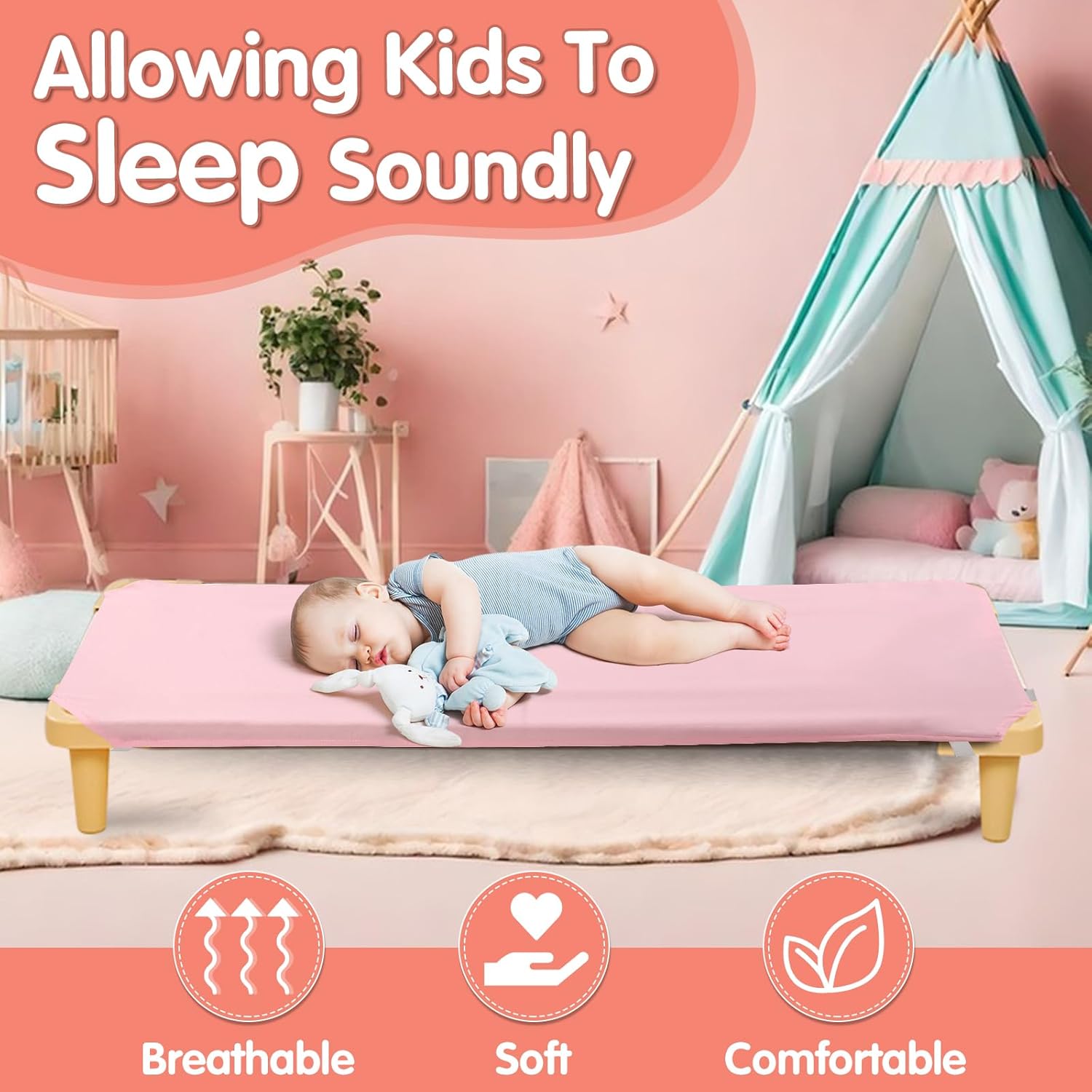 With a vibrant pink color that adds a cheerful touch to your nursery, these sheets are both functional and fashionable. Machine-washable and easy to maintain, they help keep your childcare space clean and organized. Whether you run a daycare center or are upgrading your home nursery, these cot sheets combine comfort, durability, and style to meet all your needs.