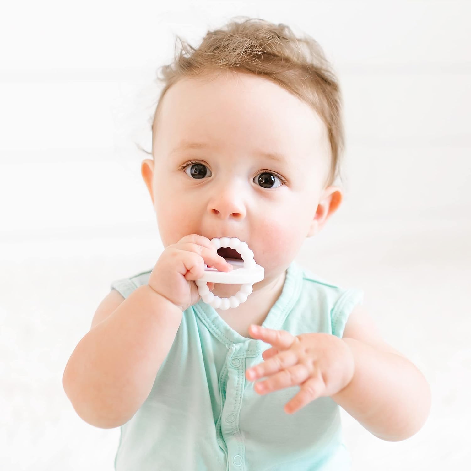Whether your baby is just starting to teethe or has several teeth, this teether is a reliable and stylish companion. Its compact size and secure grip make it easy to attach to pacifier clips, offering added convenience for on-the-go parents. It fits comfortably in a babyâs mouth and can be used alongside pacifiers for extra soothing. The soft texture is gentle on gums, and the fun, colorful design keeps babies entertained while they chew. Choose this safe, functional, and durable baby teether for a better teething experience for your child.