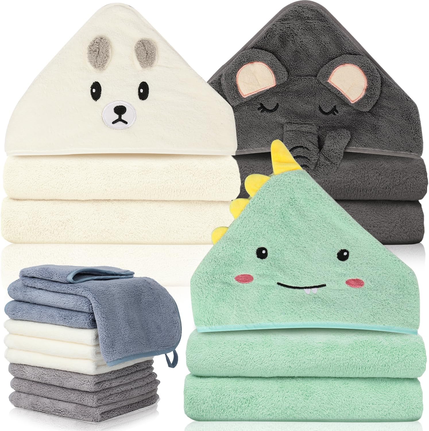 This set is perfect for parents who want all the essentials in one place. It features 3 large hooded towels for drying, wrapping, or burping and 9 small washcloths for hand drying, face cleaning, or gentle baby care.