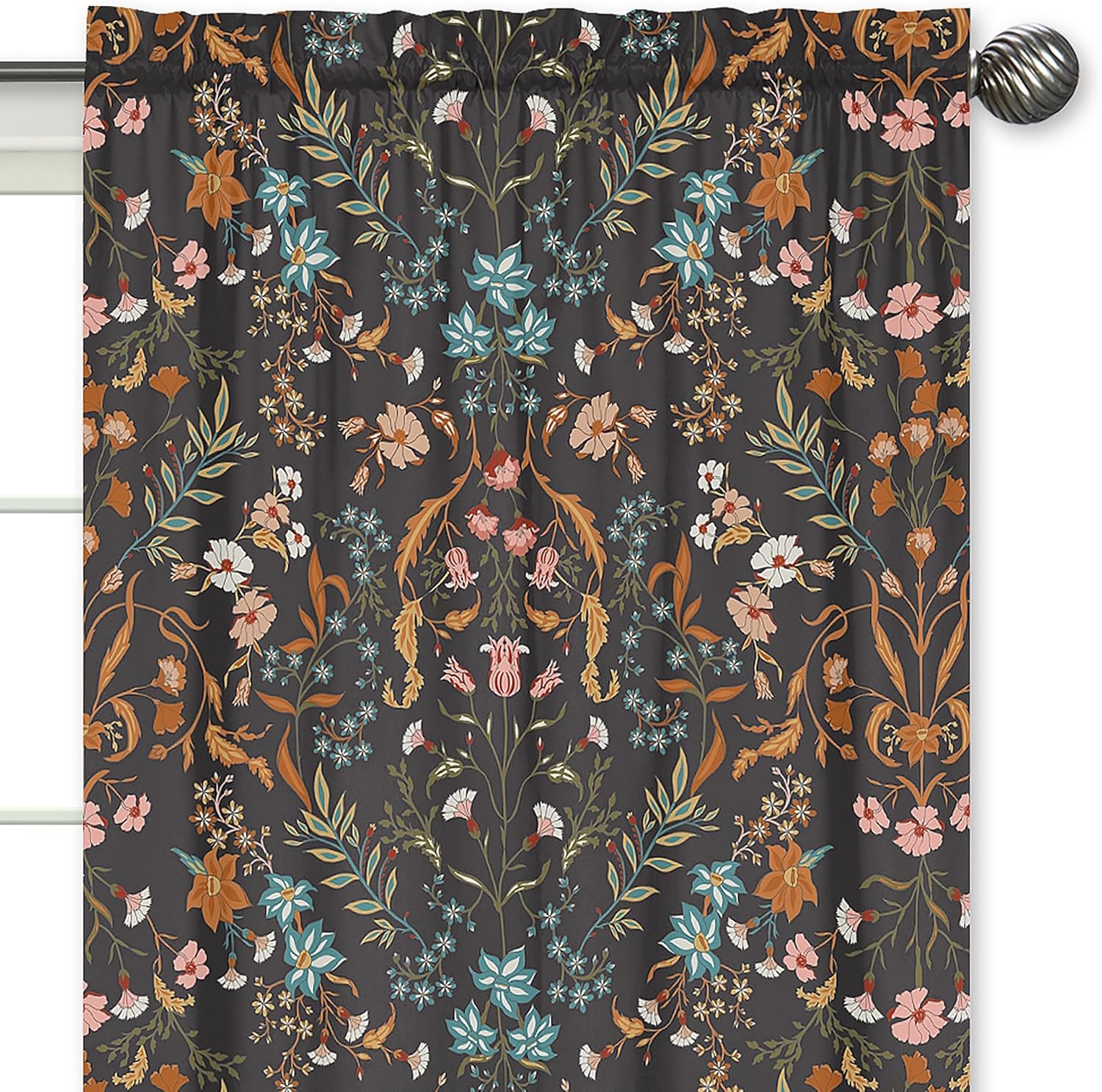 These boho flower curtains bring a soft, dreamy aesthetic to your nursery or baby room. Featuring a beautiful blend of black, rust orange, teal, and pastel hues, they create a warm and inviting atmosphere perfect for new baby showers or gender reveals. The light filtering design allows natural light to flow through while adding a touch of bohemian charm to any space.