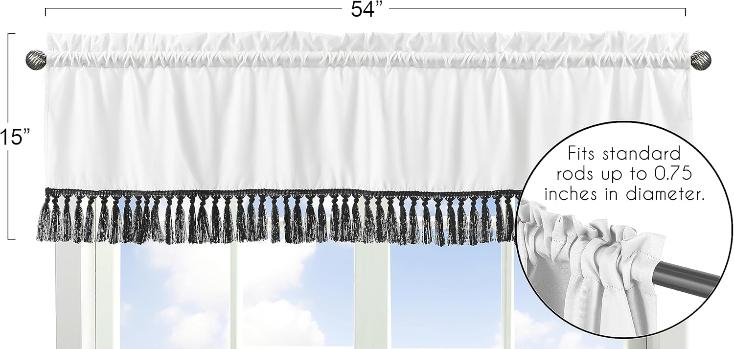Add a touch of boho charm and farmhouse elegance to your home with this versatile window valance from Sweet Jojo Designs. Perfect for nurseries, kids' rooms, bathrooms, and bedrooms, it combines style and durability to create a warm, inviting atmosphere in any space.