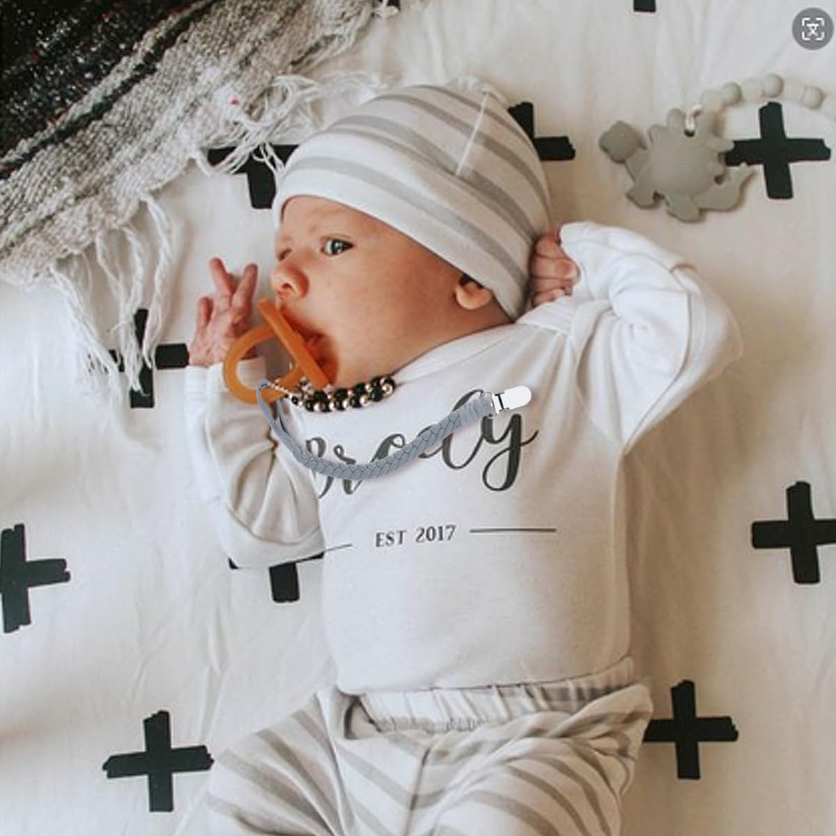 Perfect for parents who want to maintain order and cleanliness, these clips are easy to wipe down and built to last. The braided design adds a charming, playful element to your baby's routine, making it a delightful accessory. Available in a variety of colors, these pacifier clips are suitable for both baby boys and girls, blending functionality with a beautiful touch.