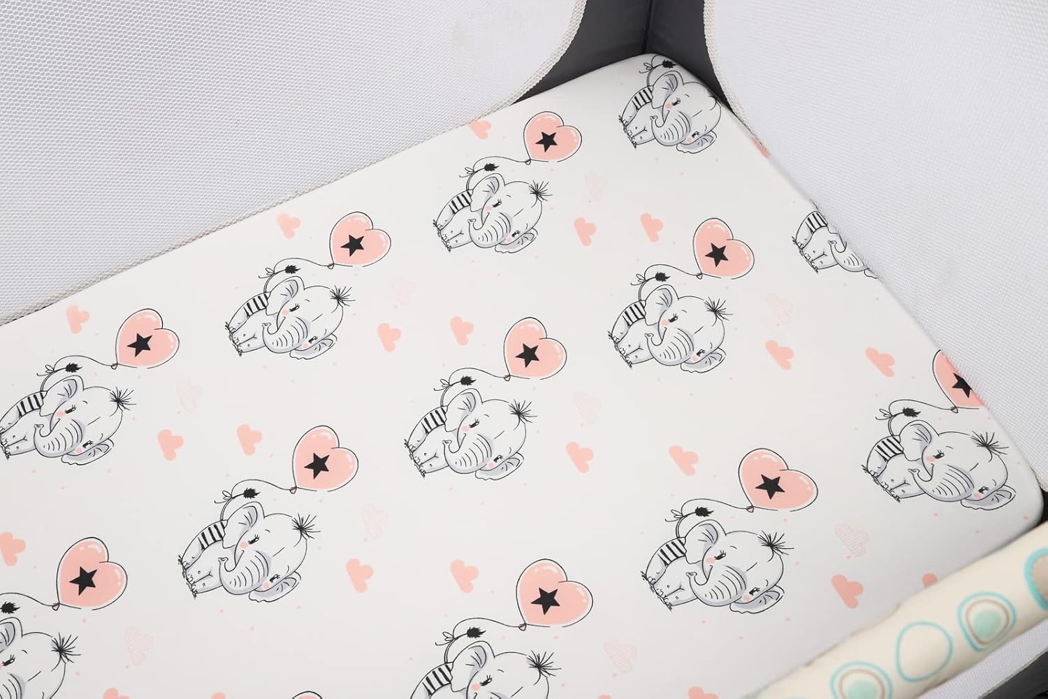 Each sheet is designed with a 360° elastic band for a secure fit on standard-sized pack n play, mini crib, or playard mattresses. This ensures a snug and peaceful night for your little one, no matter where the adventure takes you. These sheets are easy to clean and maintain â simply machine wash and tumble dry at low heat to preserve their softness and durability over time.