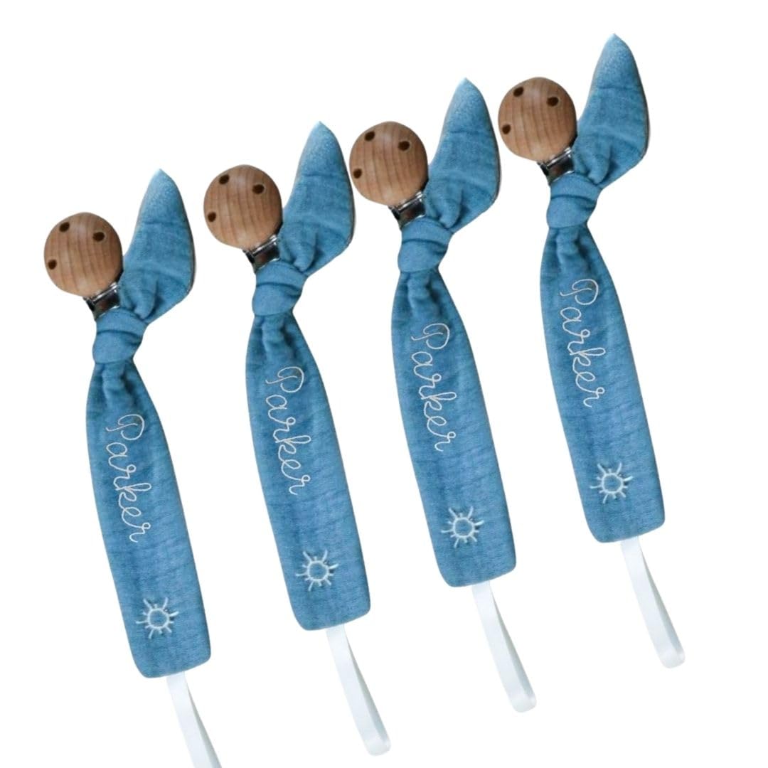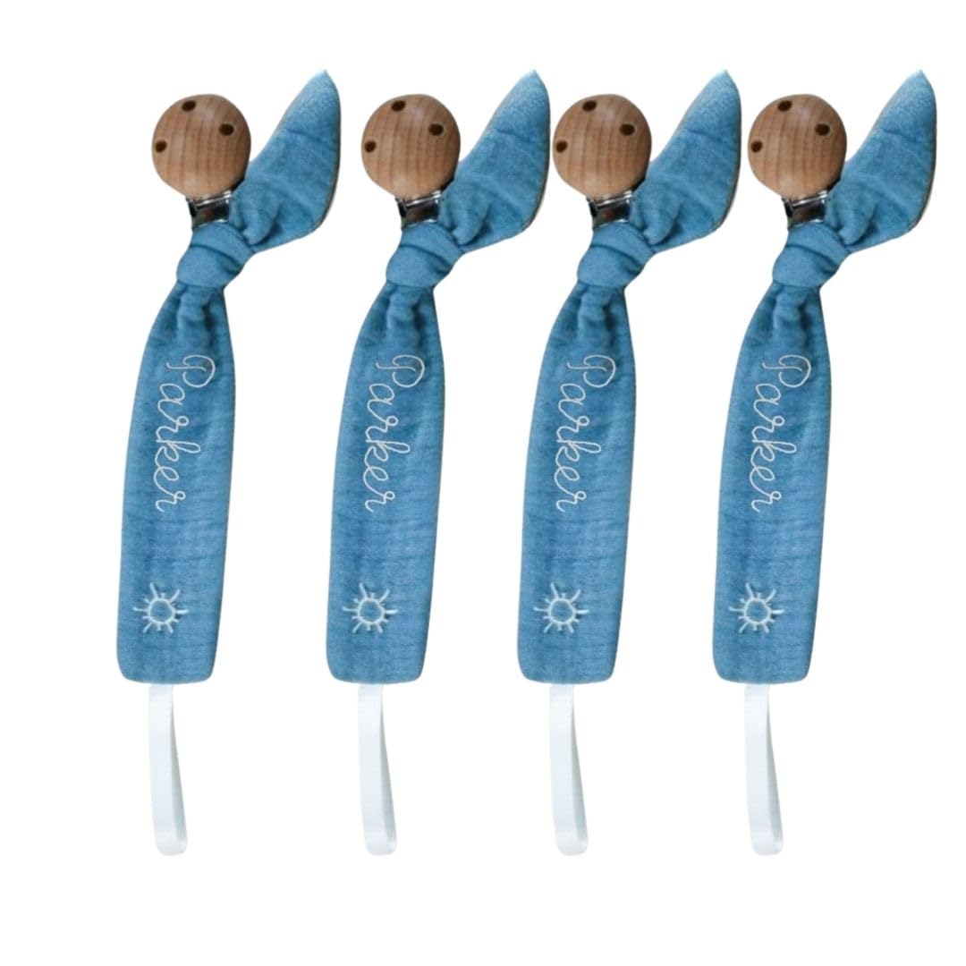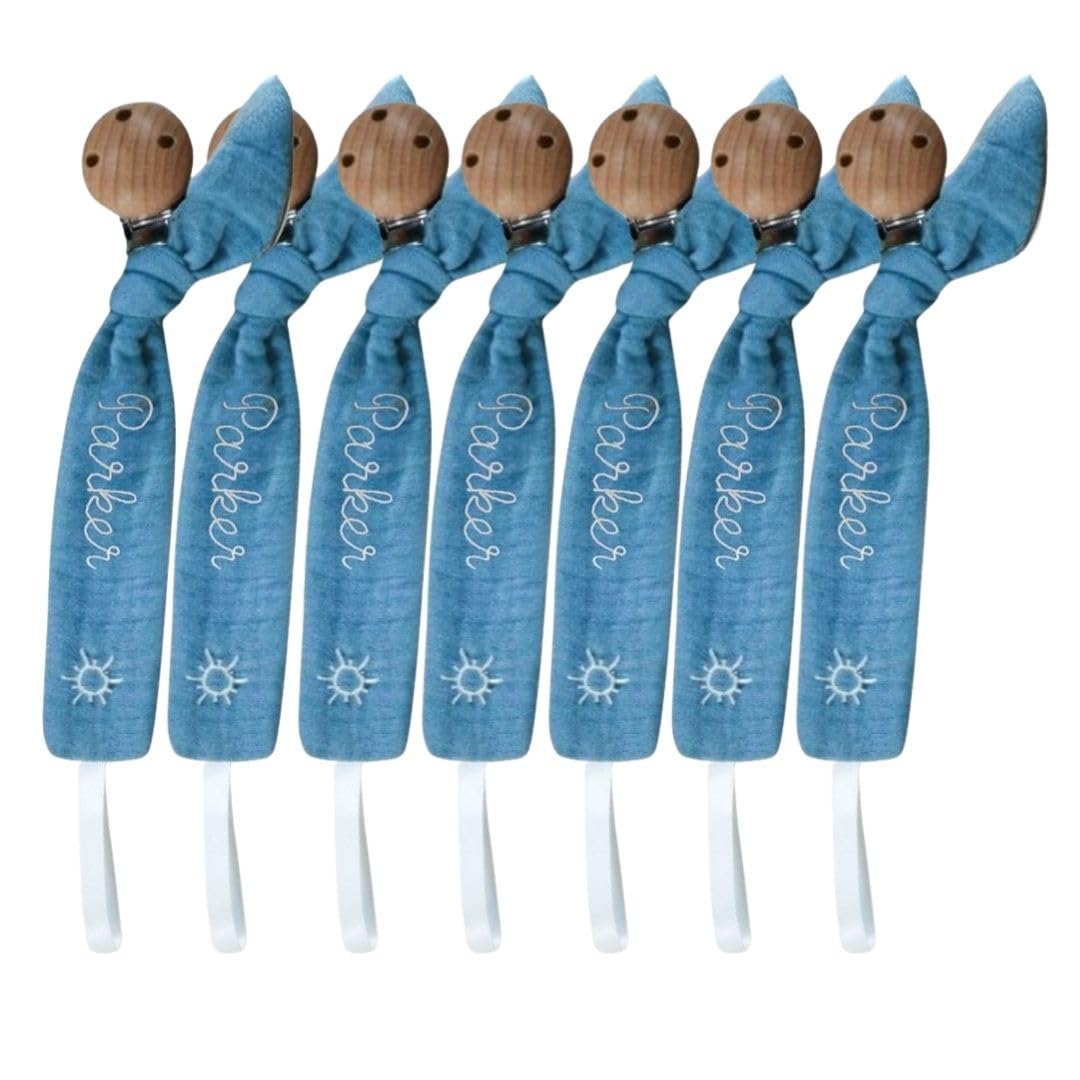 This adorable wooden letter pacifier clip is crafted with care to offer both safety and style. Itâs the perfect way to keep your babyâs pacifier attached and out of reach, while adding a personal and meaningful touch to their little outfits. Each clip is uniquely embroidered, bringing a sense of charm and character to your childâs everyday wear.