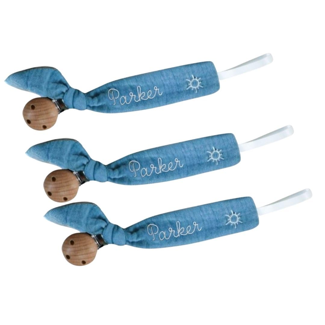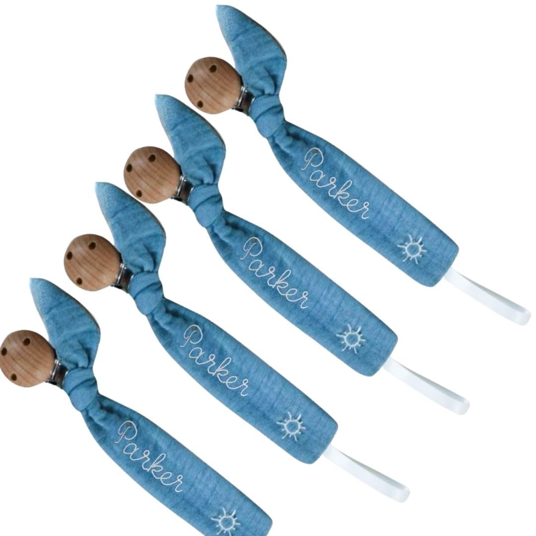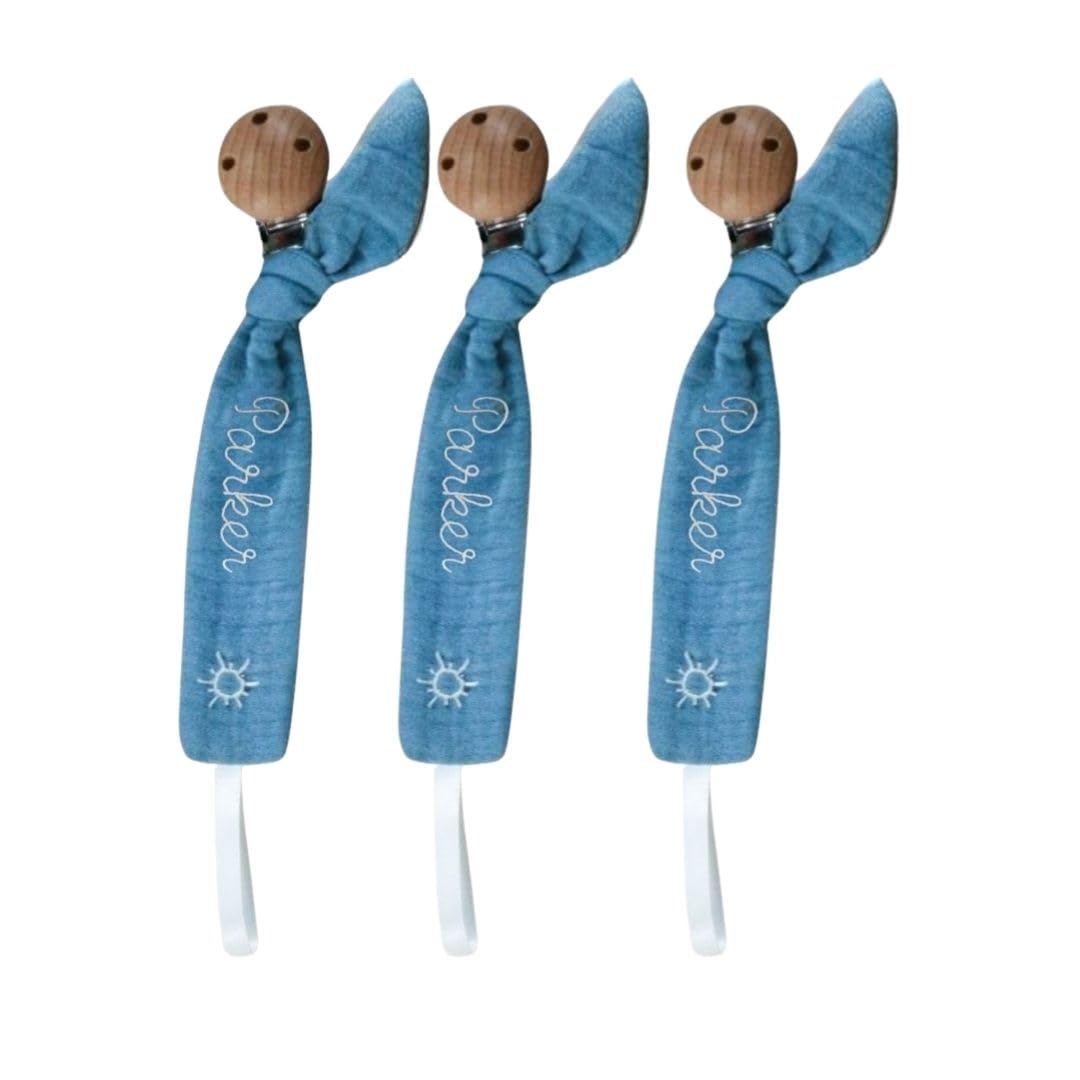 This adorable wooden letter pacifier clip is crafted with care to offer both safety and style. Itâs the perfect way to keep your babyâs pacifier attached and out of reach, while adding a personal and meaningful touch to their little outfits. Each clip is uniquely embroidered, bringing a sense of charm and character to your childâs everyday wear.