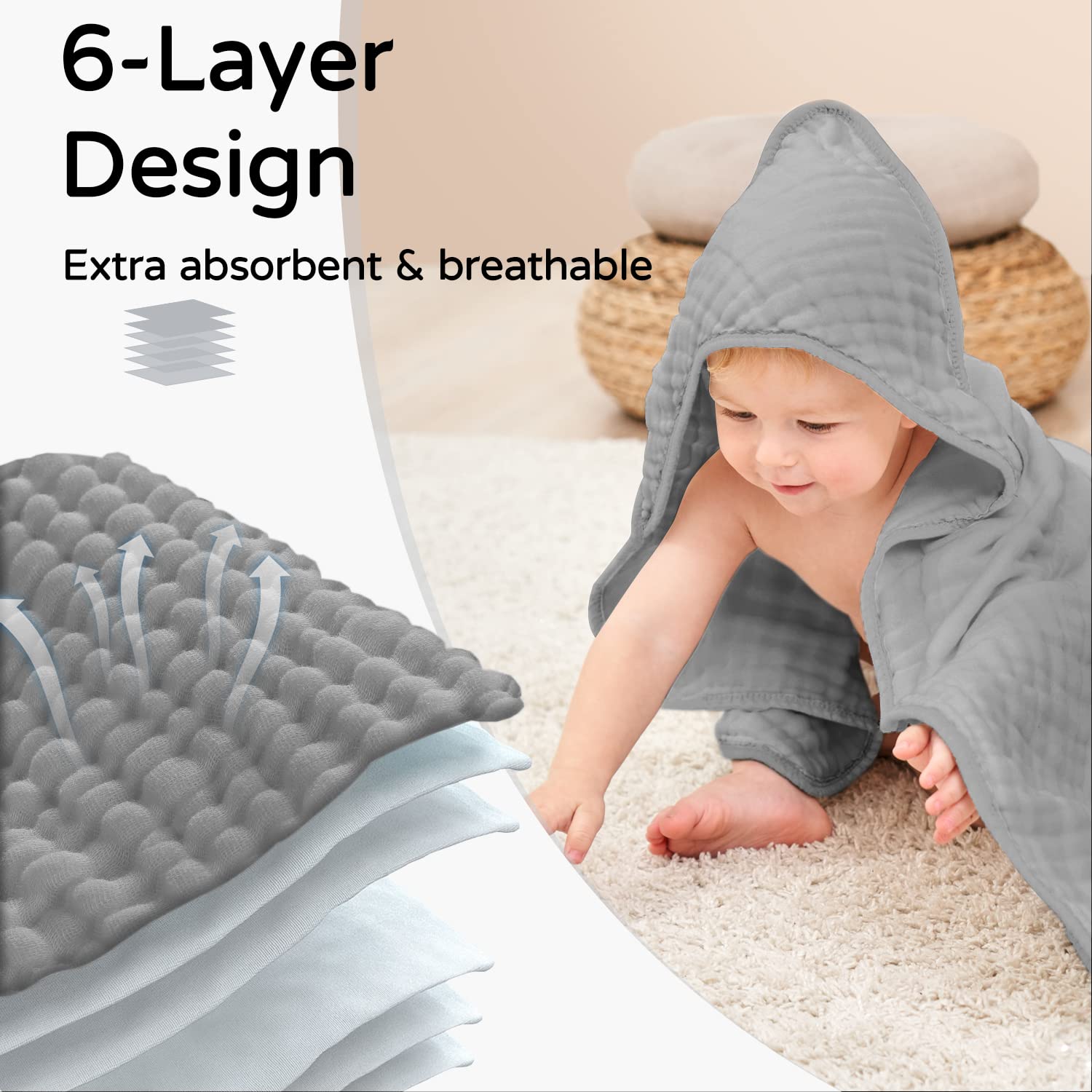 Introducing Yoofoss' 2-pack of 32-inch hooded baby towels, crafted from 100% organic muslin cotton. These gentle, breathable, and ultra-soft towels are ideal for your baby's sensitive skin and offer a safe alternative to traditional cotton products. Whether you're wrapping your little one after a bath, taking them to the beach, or using them as a cozy baby blanket, Yoofoss has you covered with a thoughtful design that keeps your baby warm and comfortable.