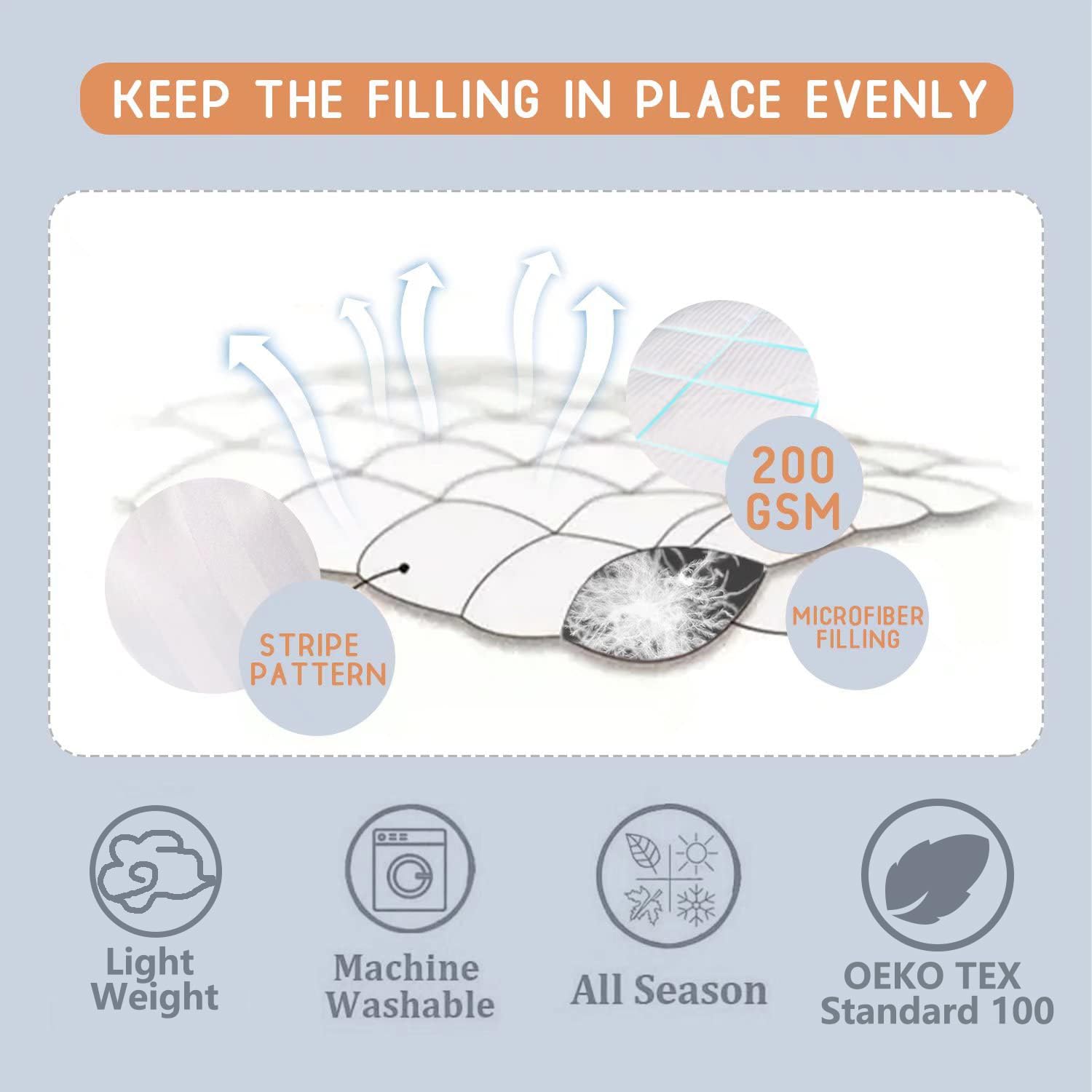 The non-clumping padding stays fluffy even after frequent use, while the pilling-free surface keeps the comforter looking new. It's machine washable and tumble dry low, so it's easy to care for without compromising its softness or shape.